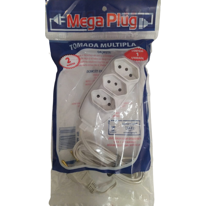 Extensão Elétrica Mega Plug Branca 2 Metros - 3 Metros - 5 Metros e 10 Metros