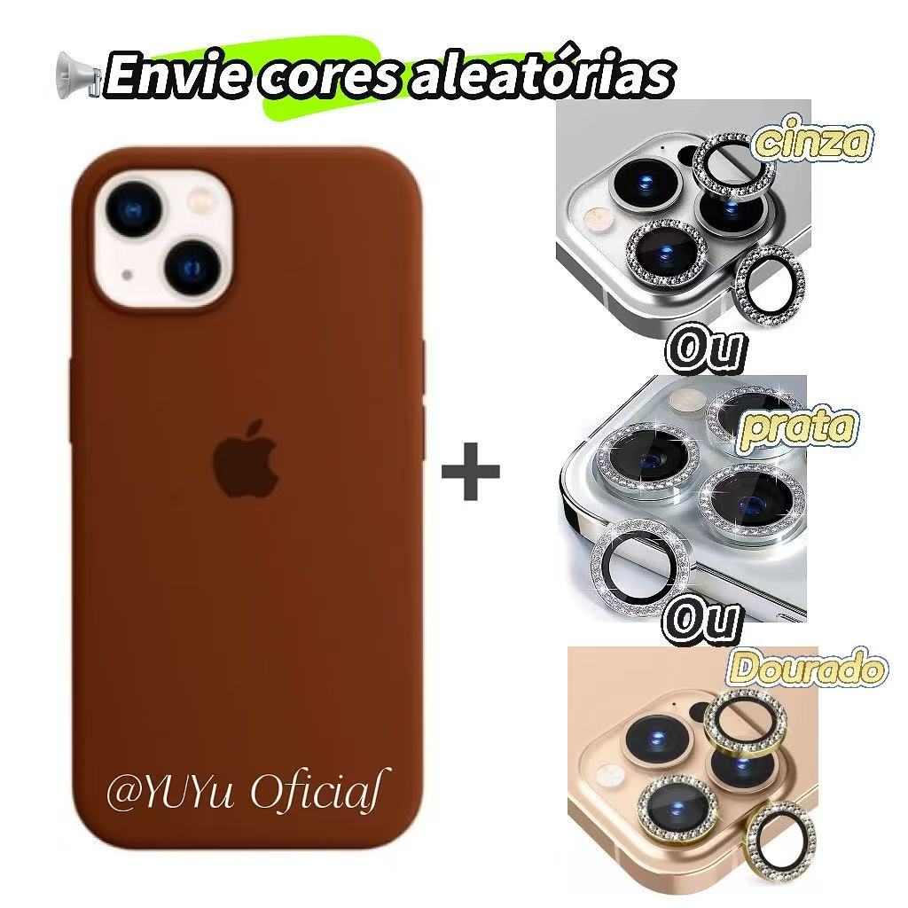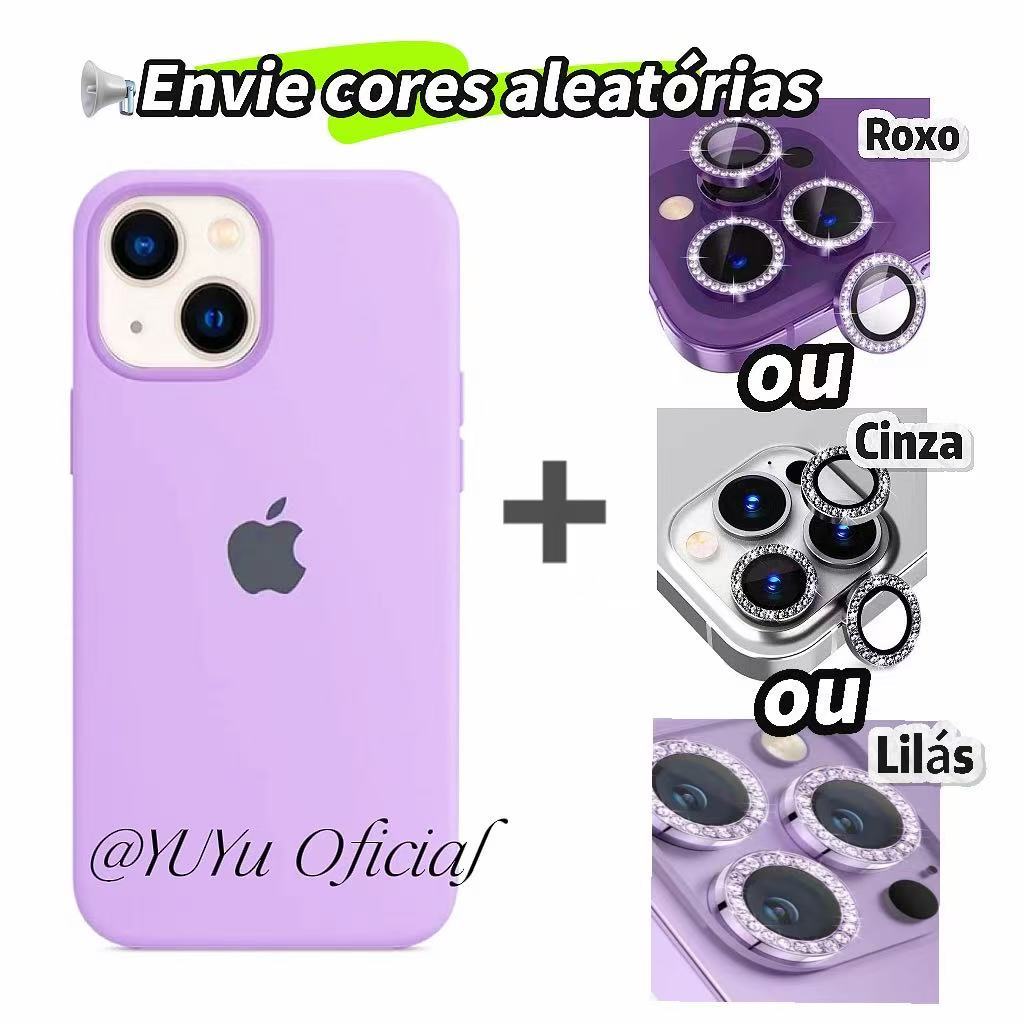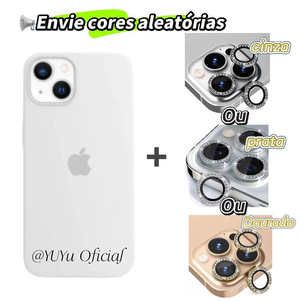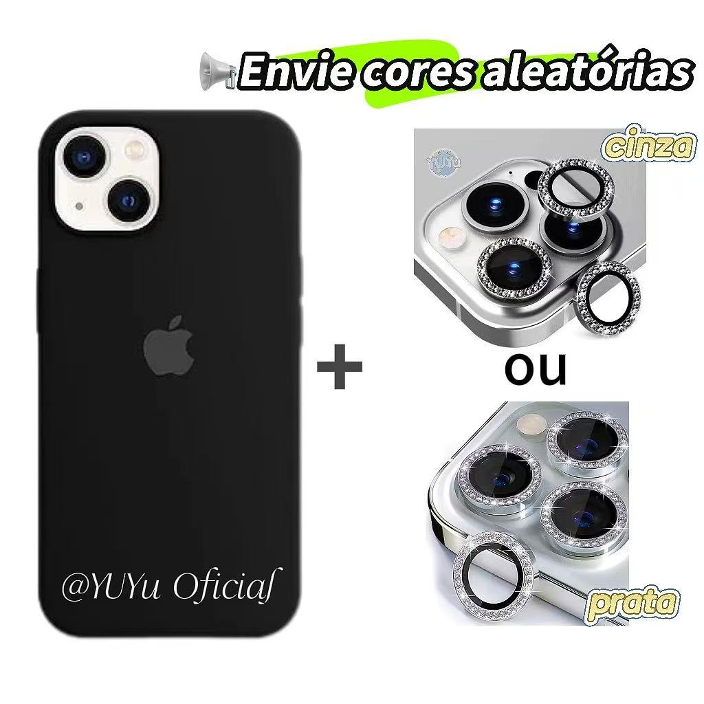 Kit Películas Lente Câmera Brilhante Com Capa Case Silicone Aveludado iPhone 14