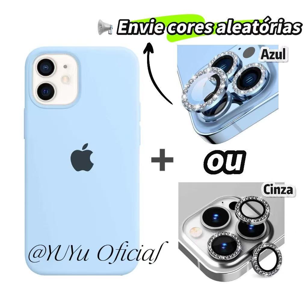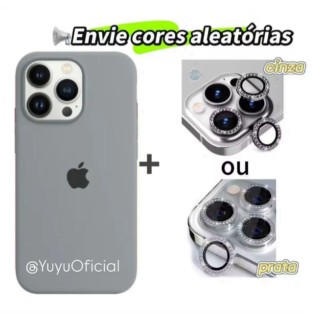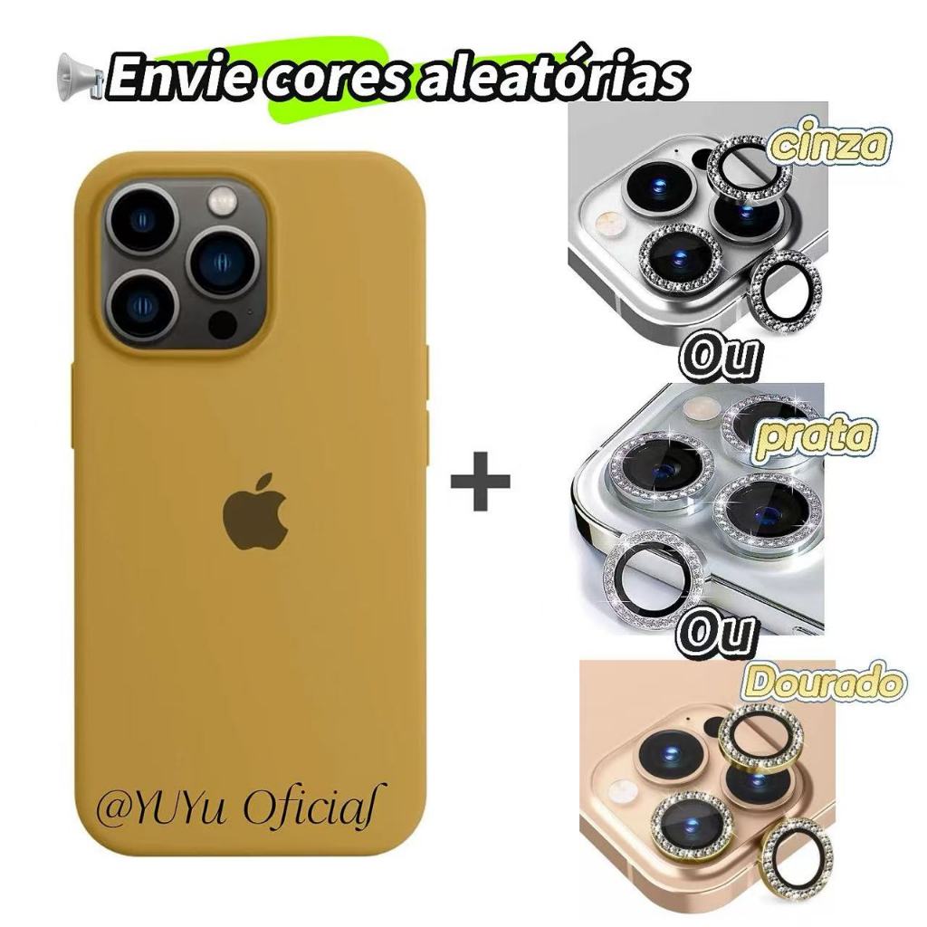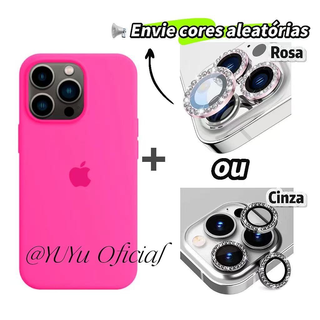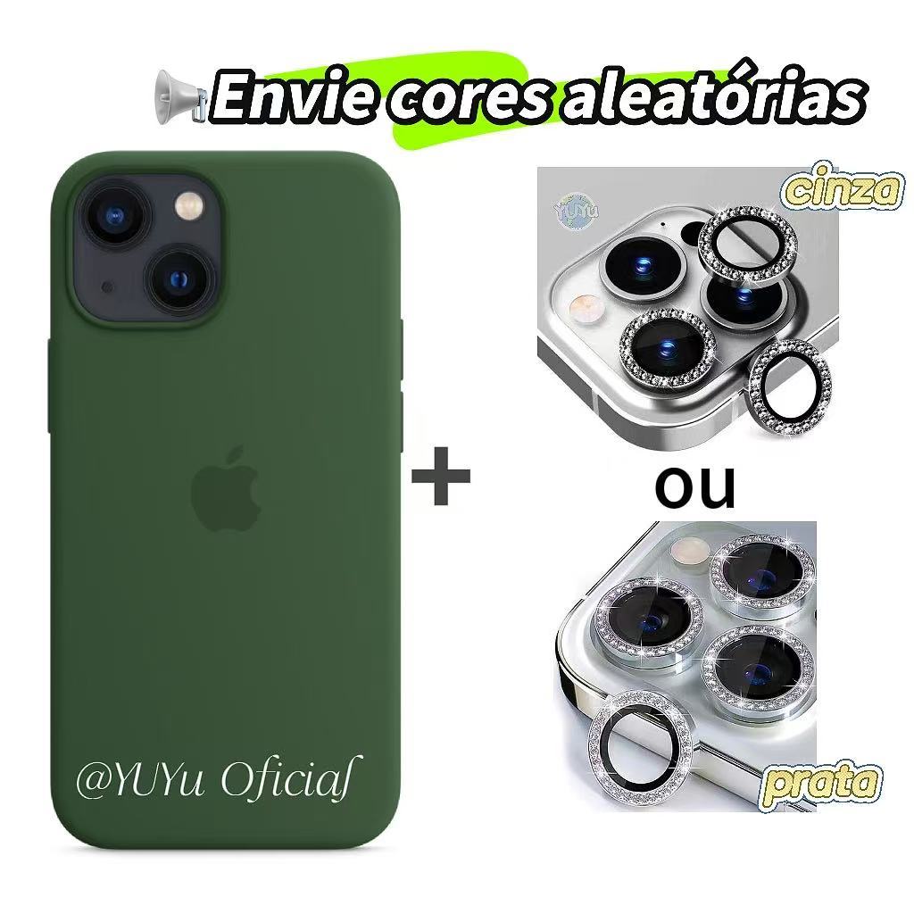 Kit Películas Lente Câmera Brilhante Com Capa Case Silicone Aveludado iPhone 14