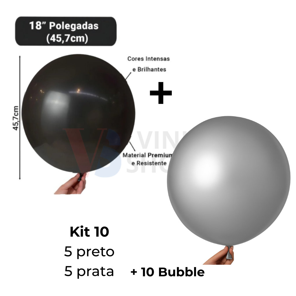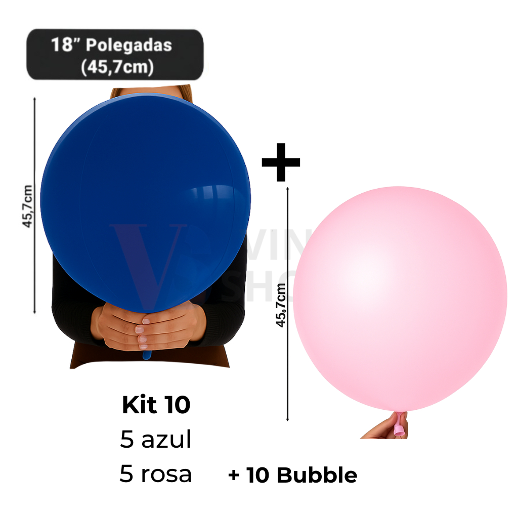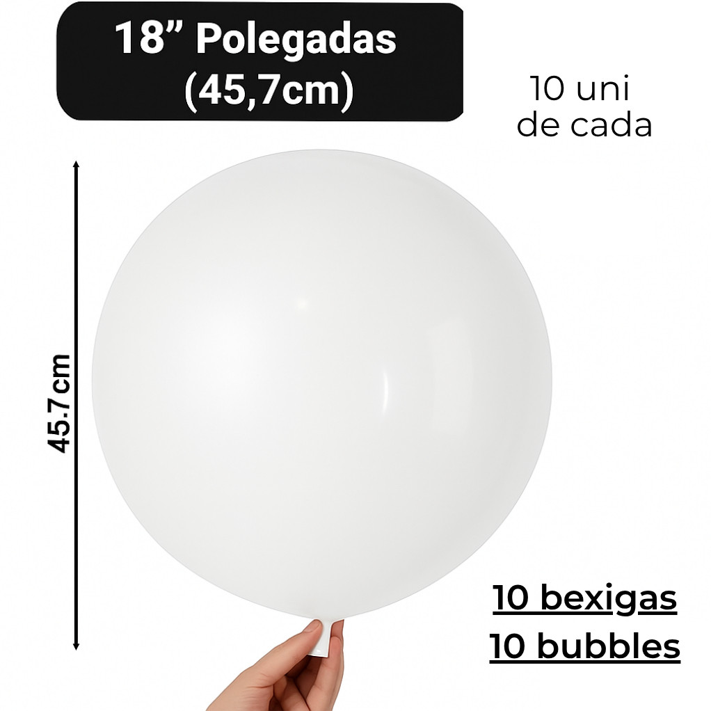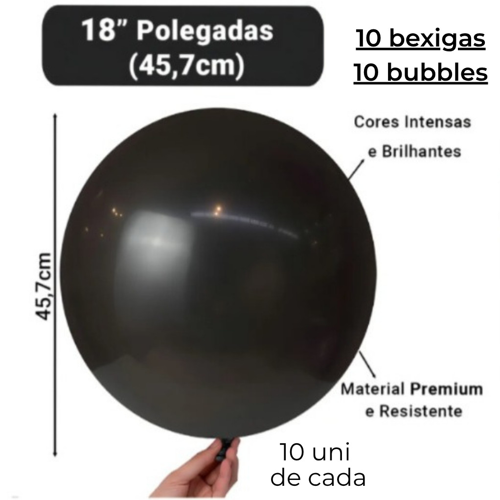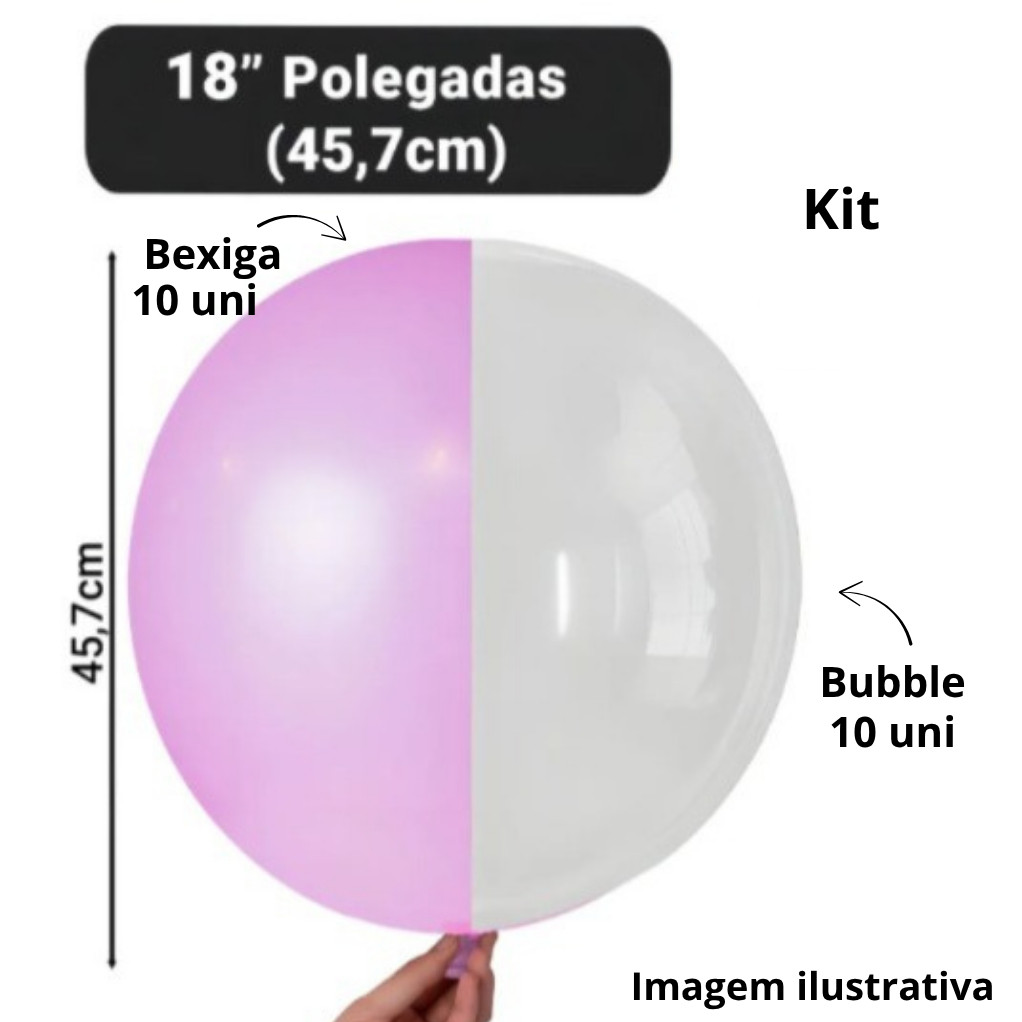 Bubble 18 Polegadas kit 10 + 10 bexigas 18 polegadas Látex Decore Com Criatividade