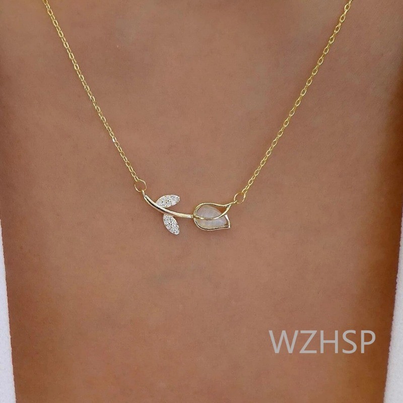 Colar De Tulipas Cintilantes Com Corrente De Colarinho Incrustado Diamante , ins New Trendy Necklace