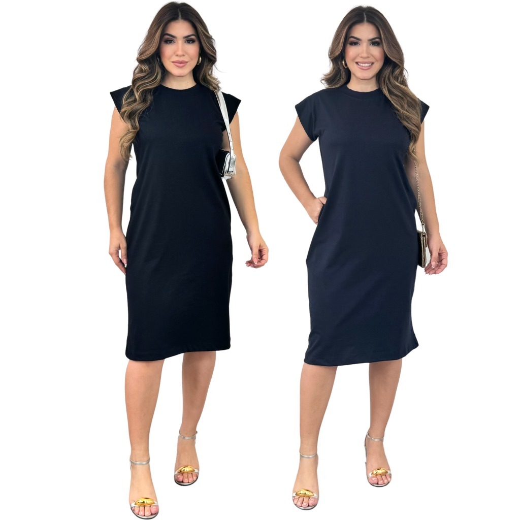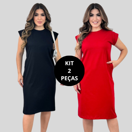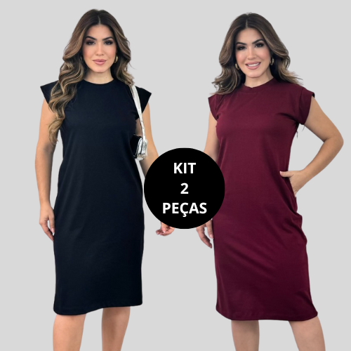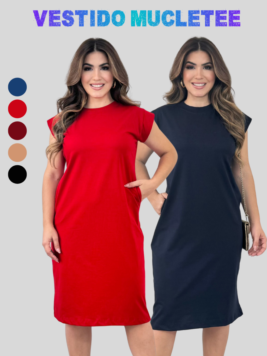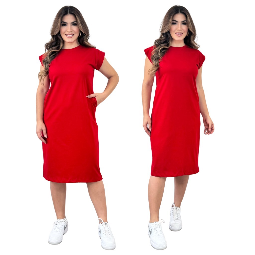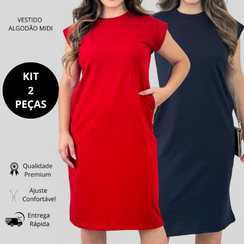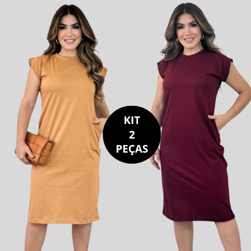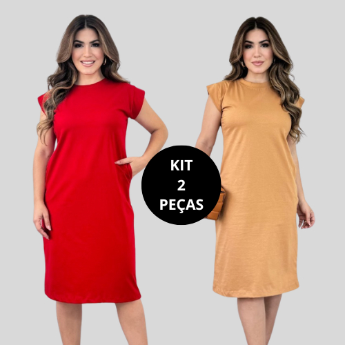 Kit 2 ou 1 Vestido Muscle Tee Com Bolso 100% Algodão Premium Manga Curta Para o Dia a Dia