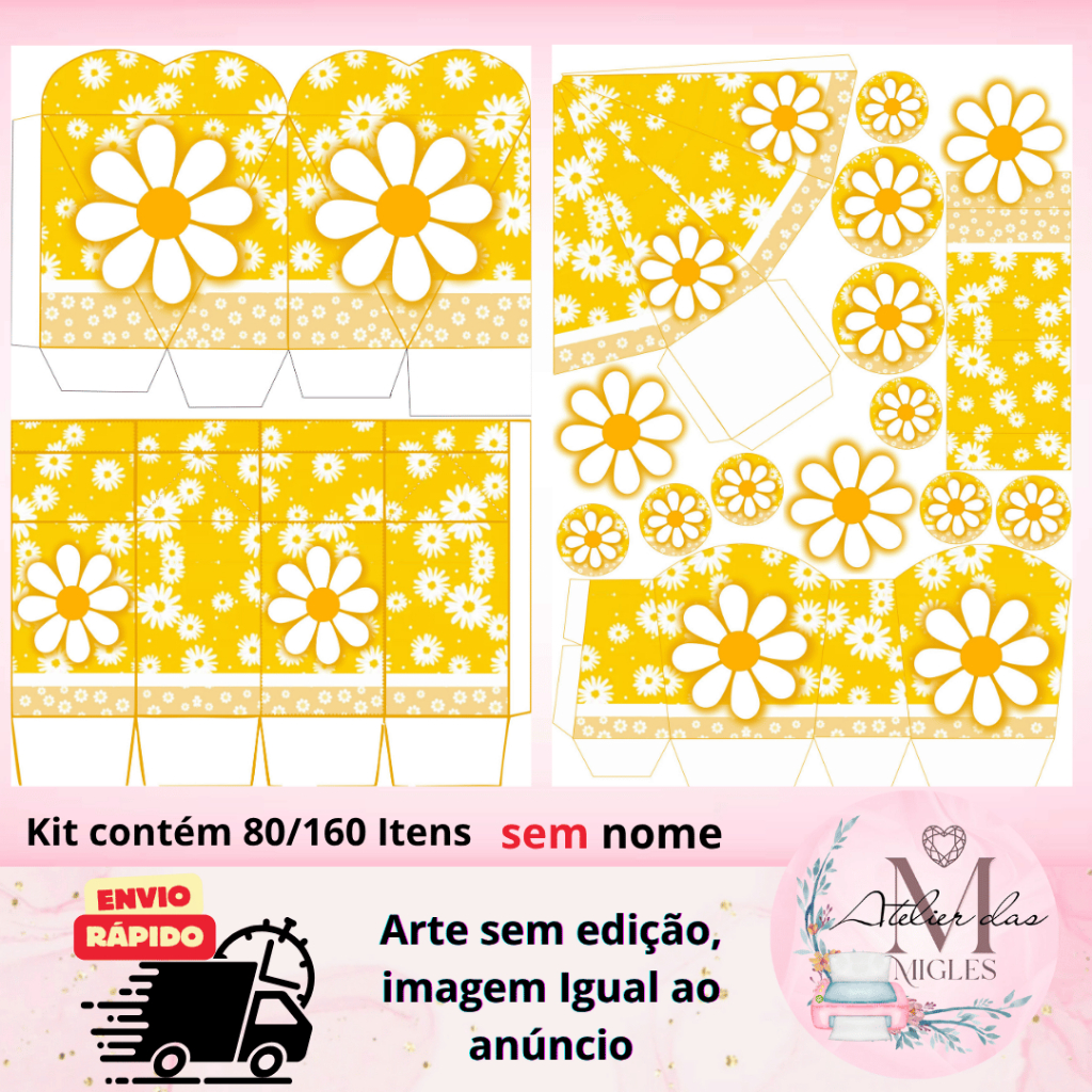 Kit com 80/160 itens lembrancinhas TEMA MARGARIDA (sem nome) - Envio rápido!!!