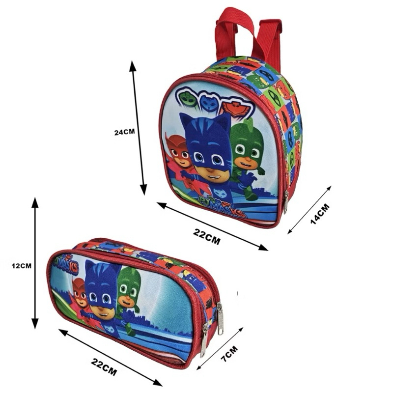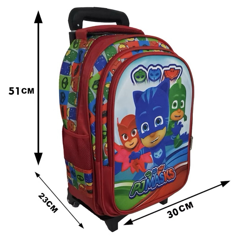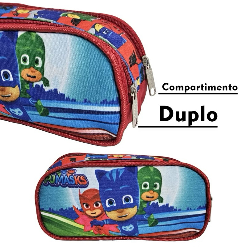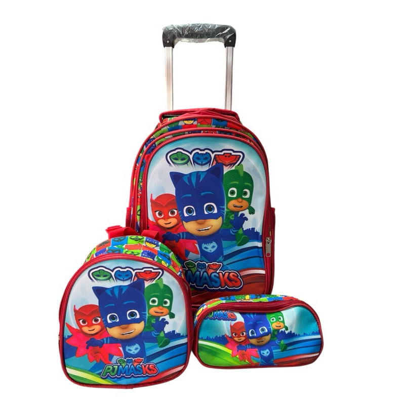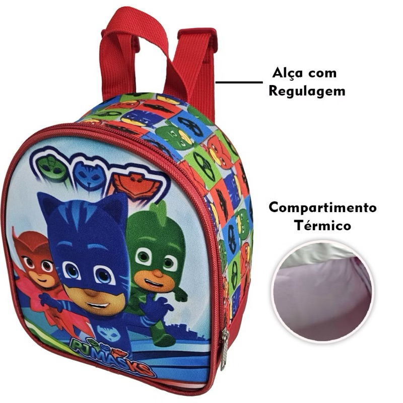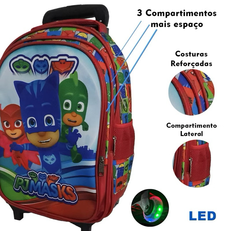 Mochila Escolar Kit Completo PJ Masks Vermelho Menino e Menina Volta As Aulas Com Rodas que acendem