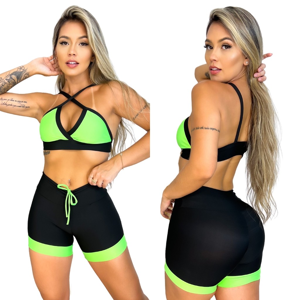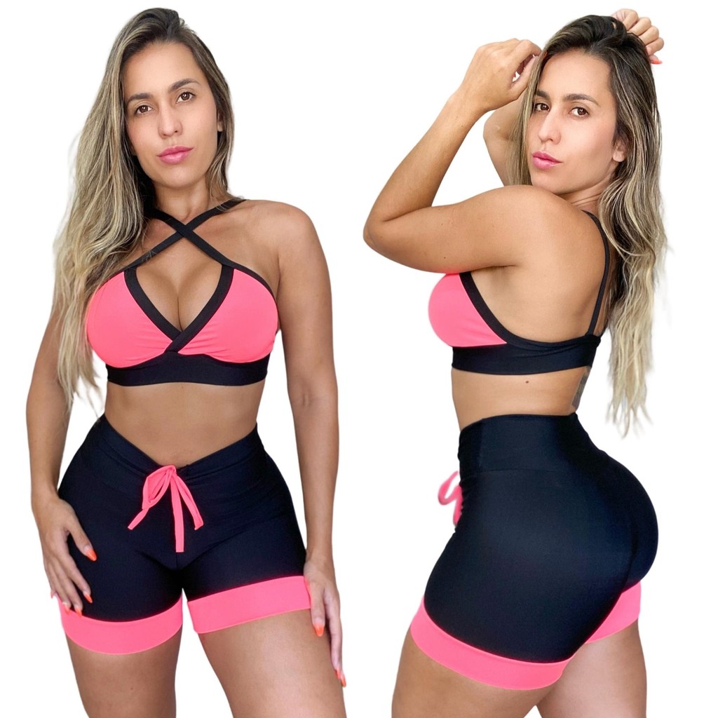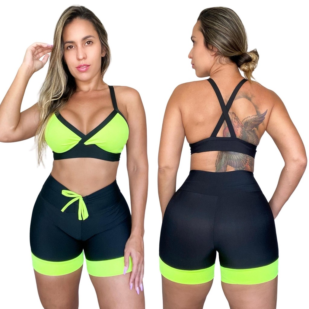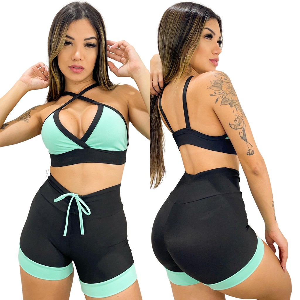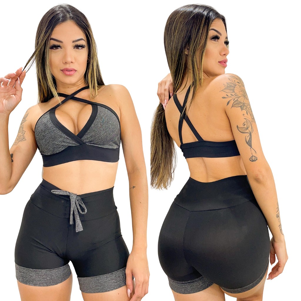 Conjunto De Academia Feminino Fitness Treino Preto Cintura Alta