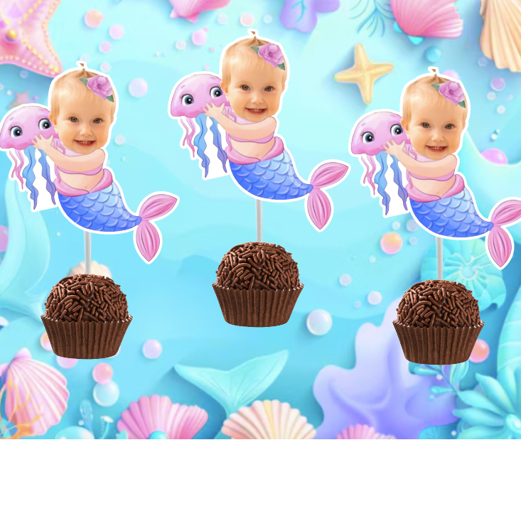 KIT TAGS, TOPPERS PARA DOCINHO SEREIA CUTE AQUARELA, FUNDO DO MAR BRIGADEIRO, ROSTINHO PERSONALIZADOS