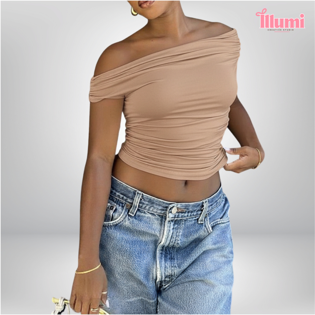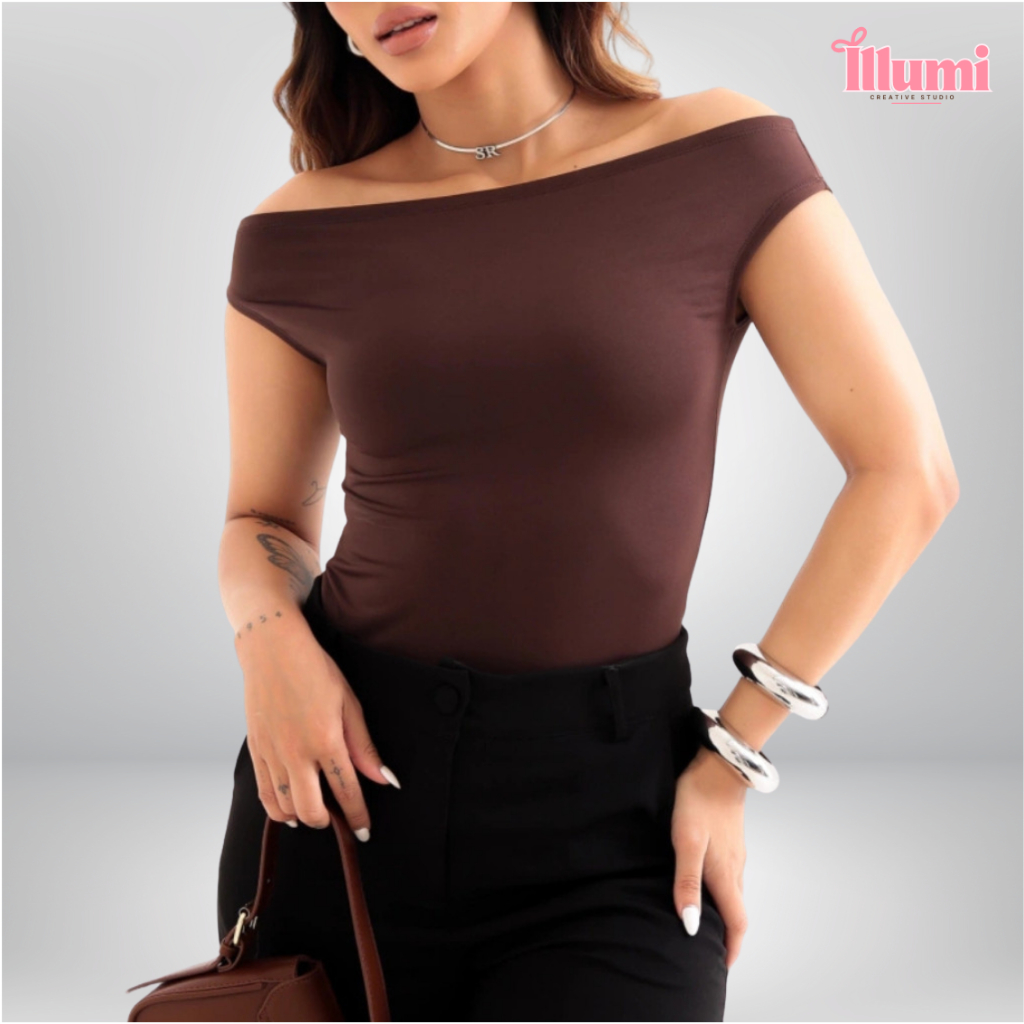 Blusa Feminina Ombro a Ombro Básica em Suplex Premium Elegante Casual Segunda Pele Manguinha