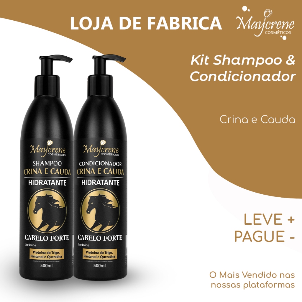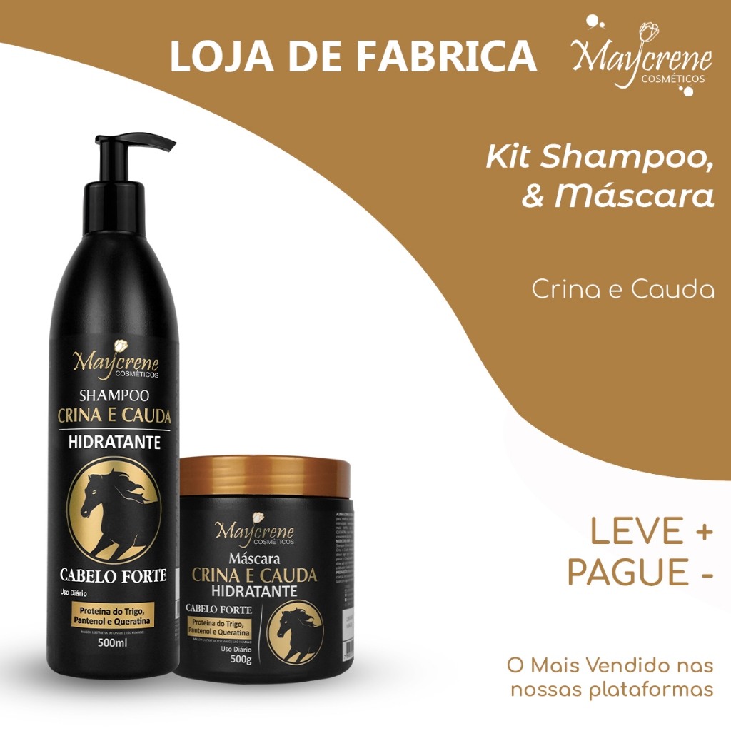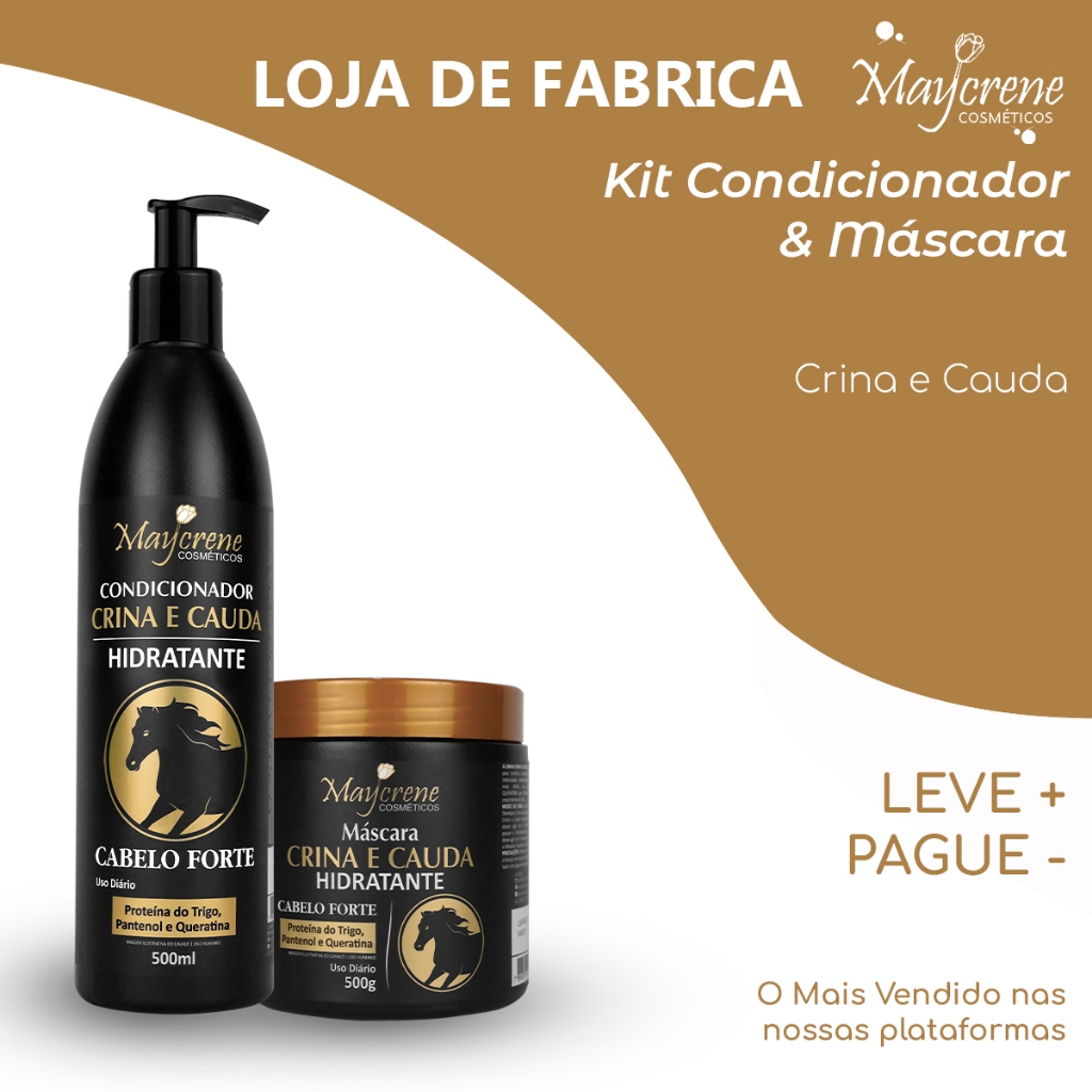 Kit Crina e Cauda Hidratante Maycrene – Shampoo + Condicionador + Máscara (500ml/500g) Cabelo Forte