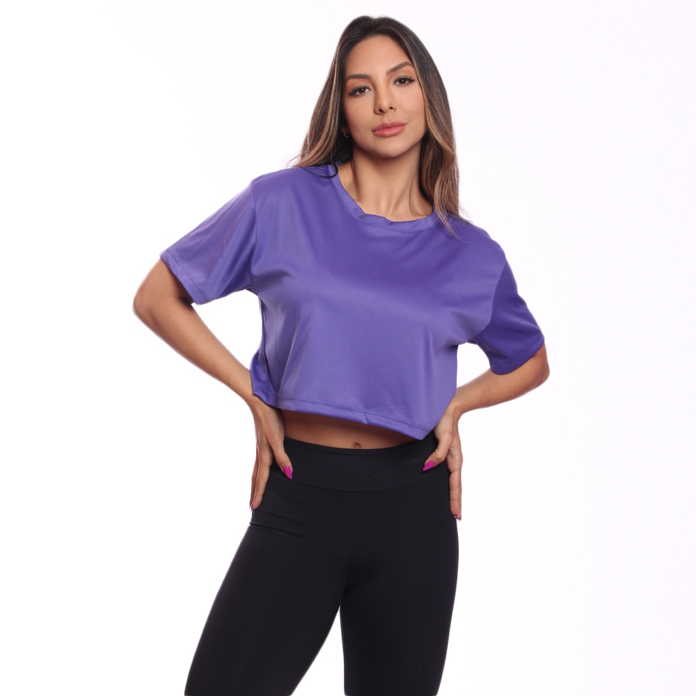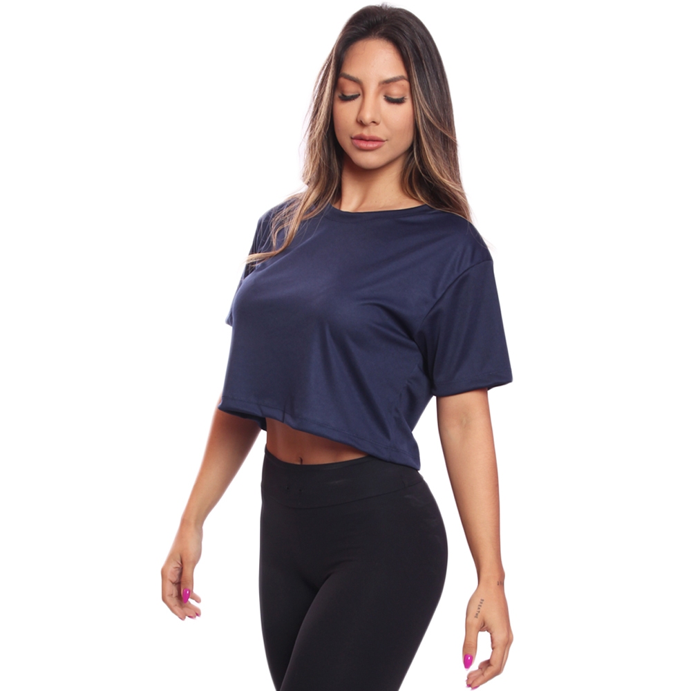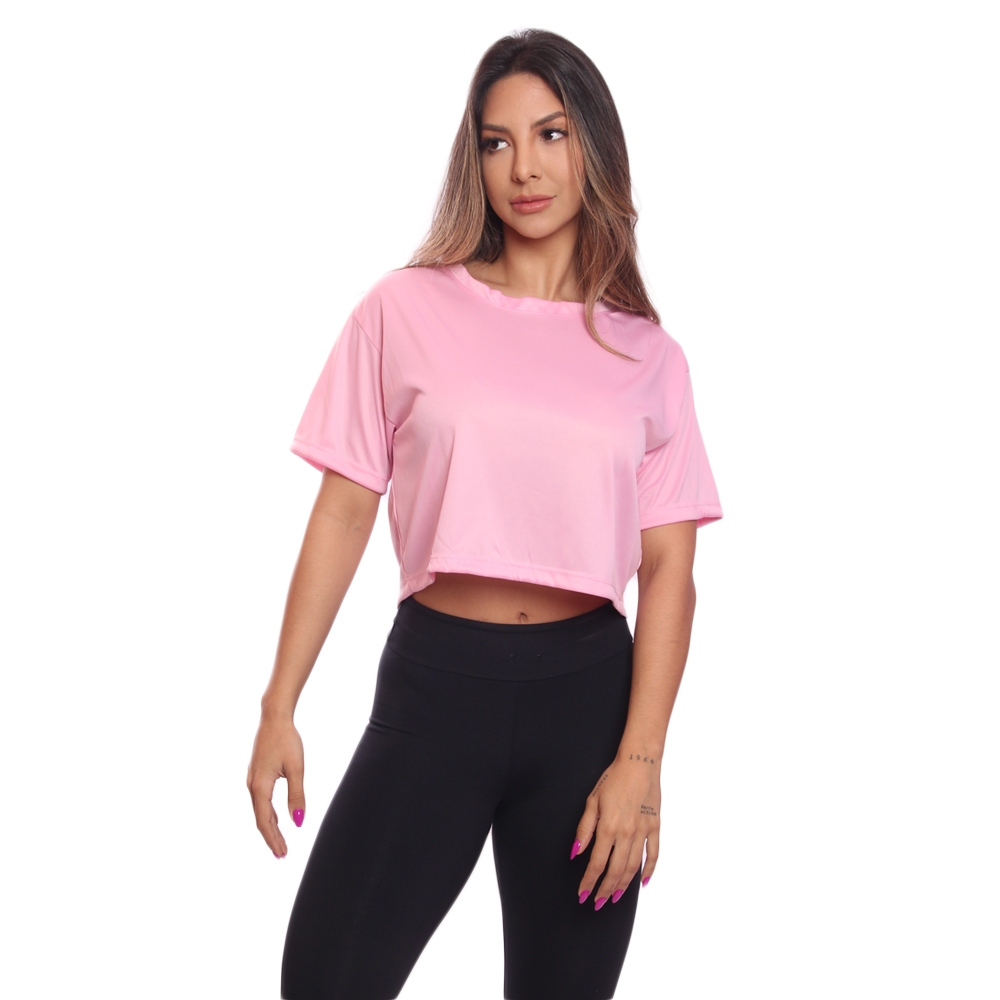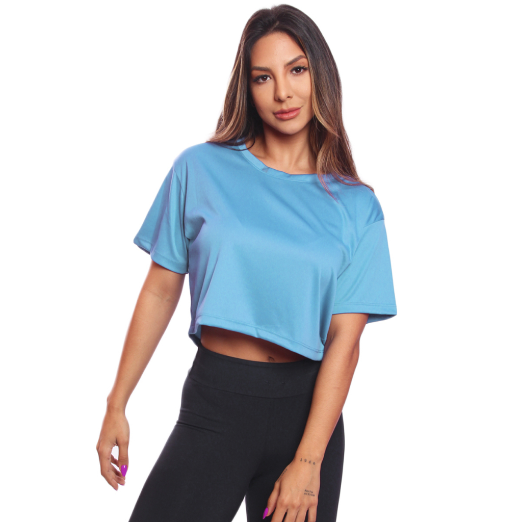 Cropped Manga Curta Feminino Dry Proteção UV Blusa Blusinha Academia Treino