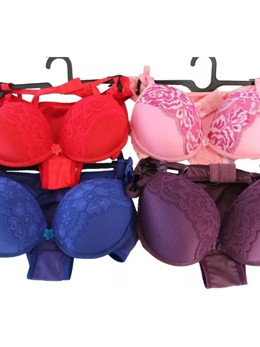 Kit 12 Conjuntos Lingerie Calcinha e Sutiã Com Renda Bojo P M G GG