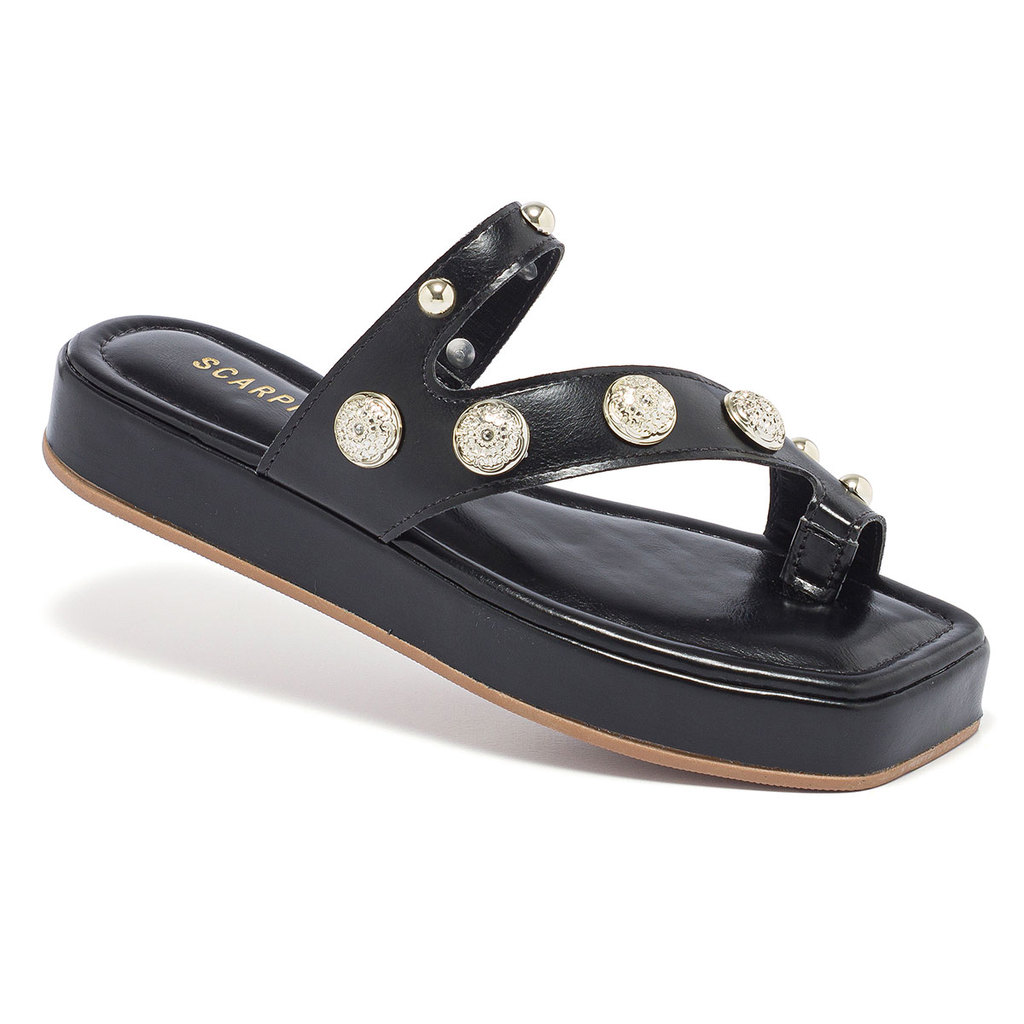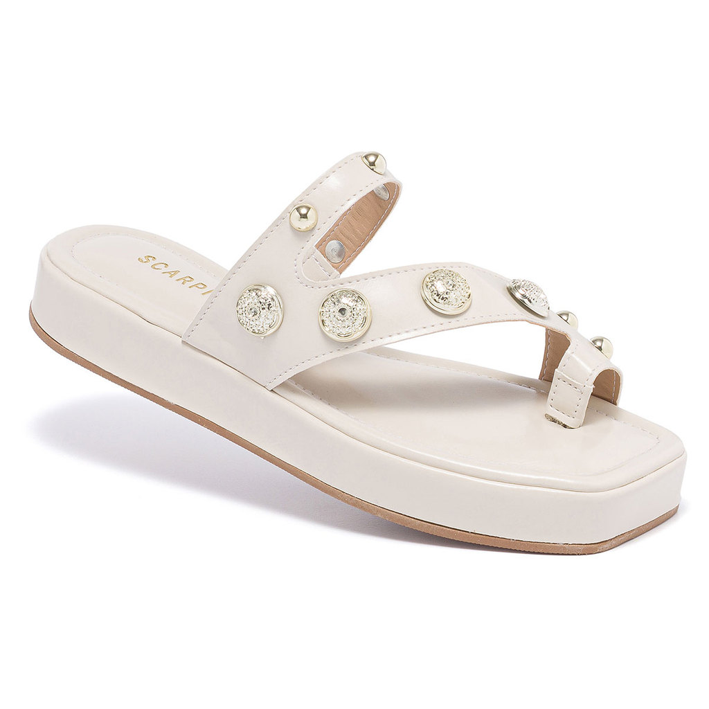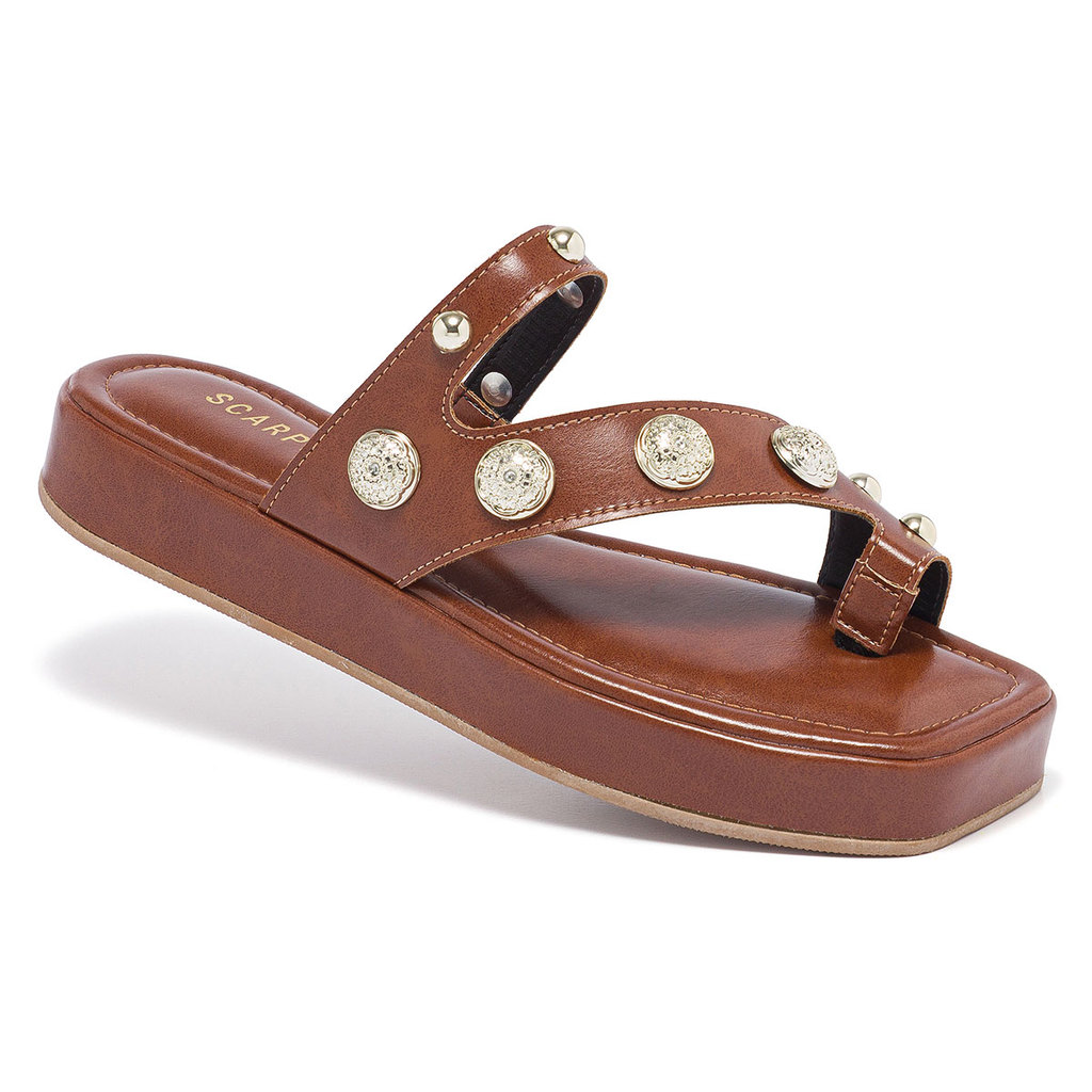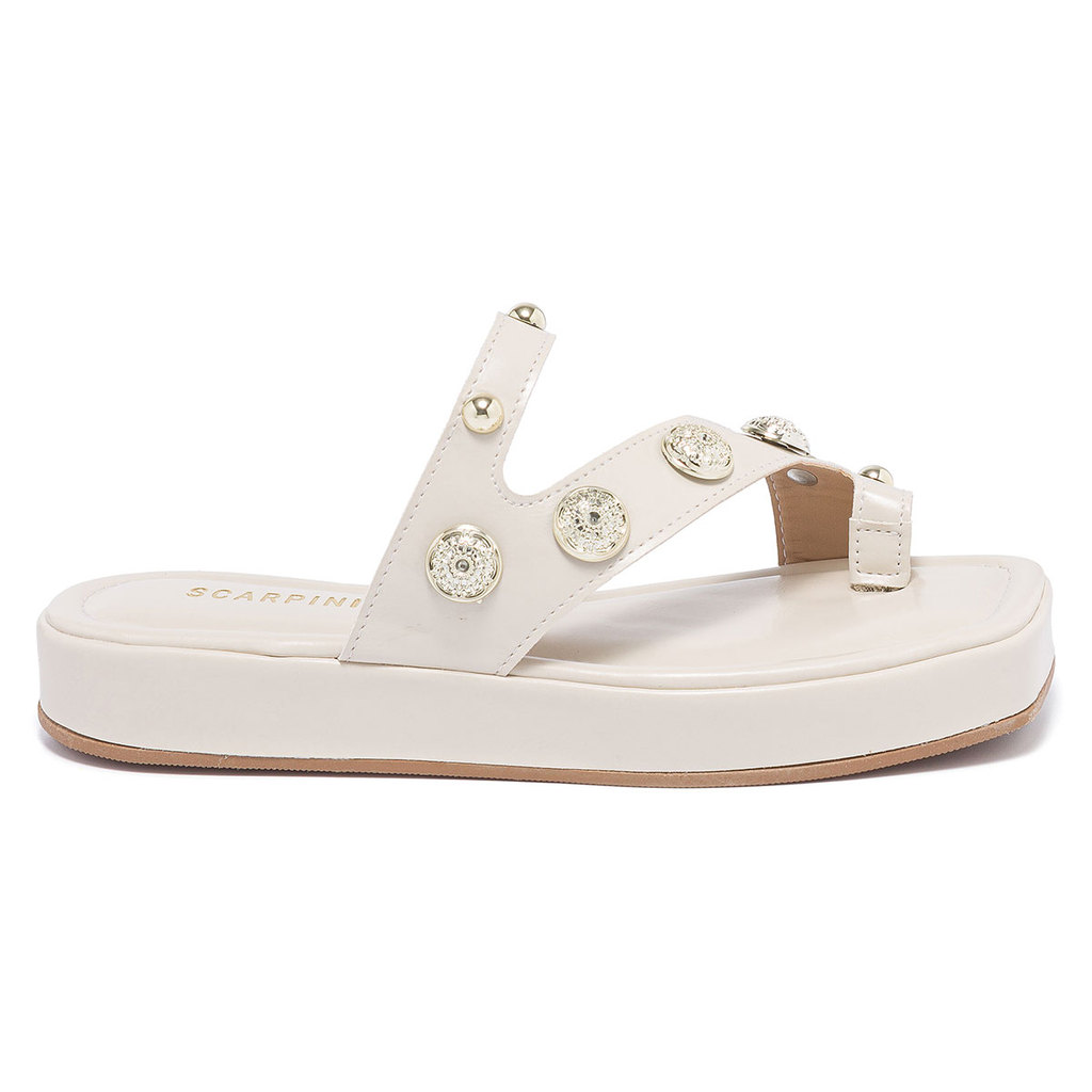 Sandália Feminina Flatform de Dedo com Aplicações Plataforma Bico Quadrado Ring Toe