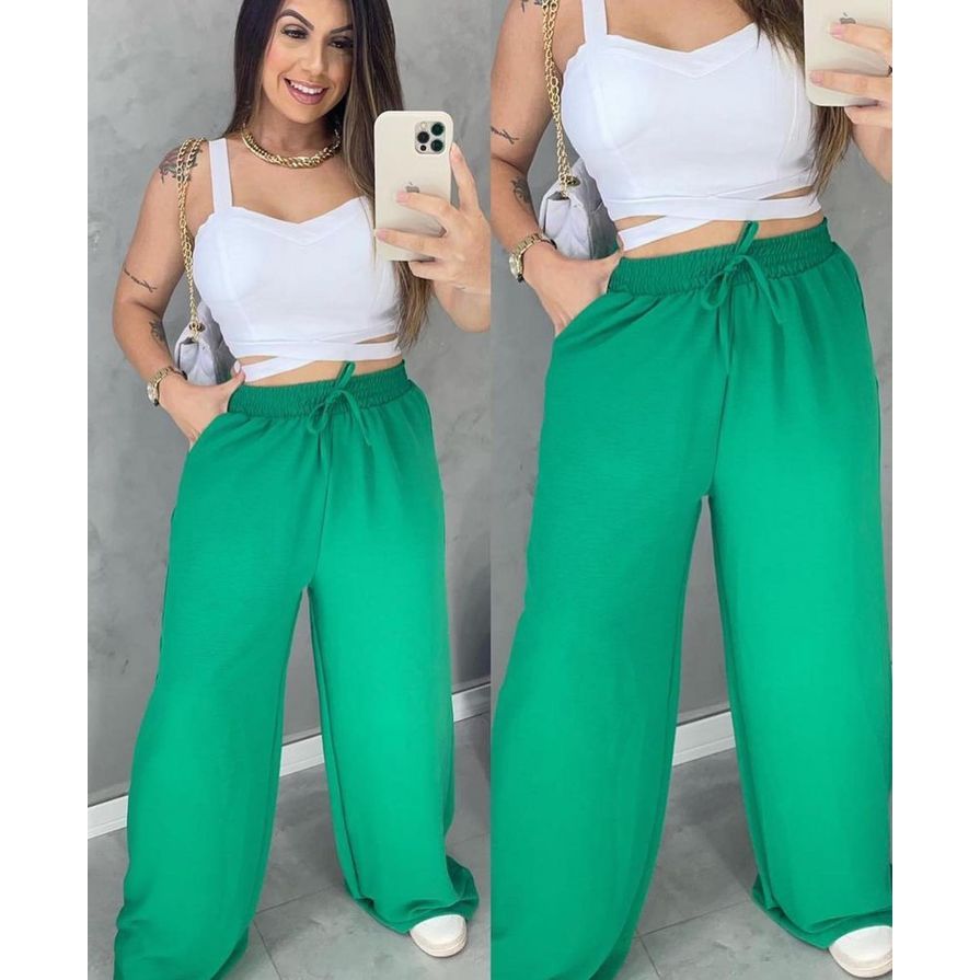 Calça Pantalona Feminina Dunas Elastico Cintura Bolso e muito Confortavel