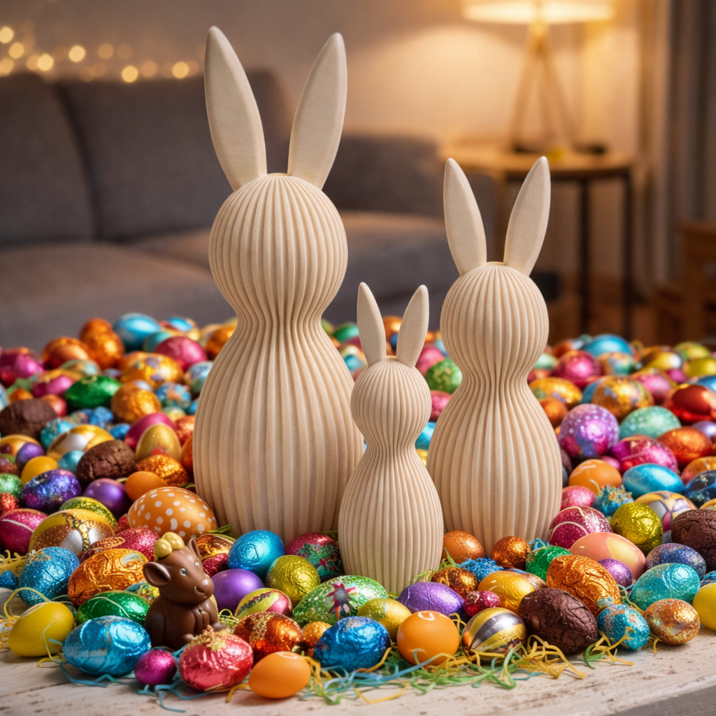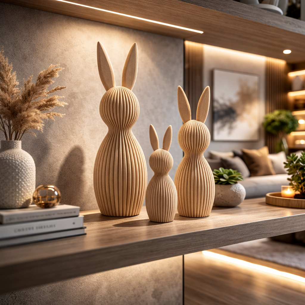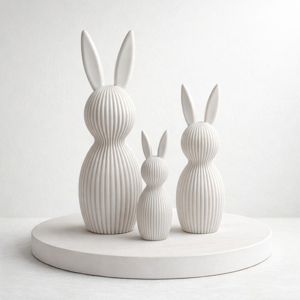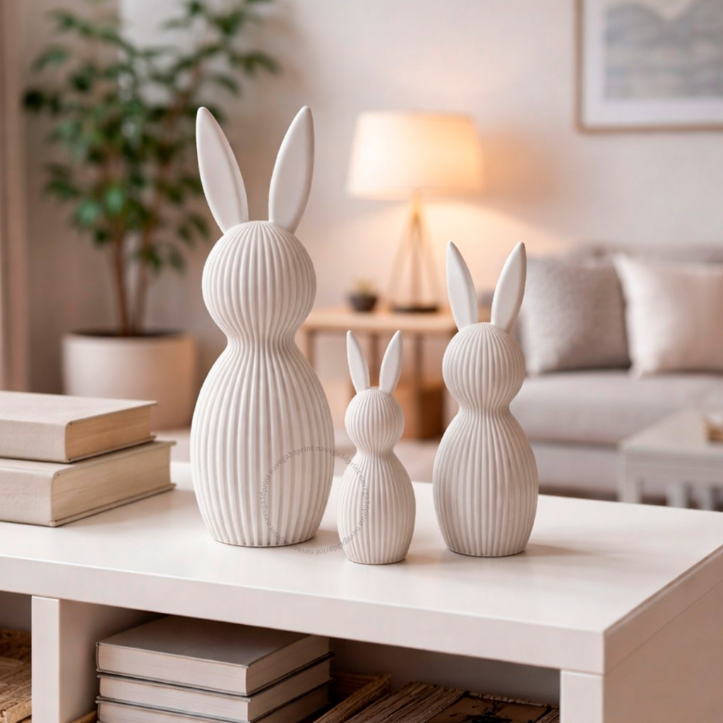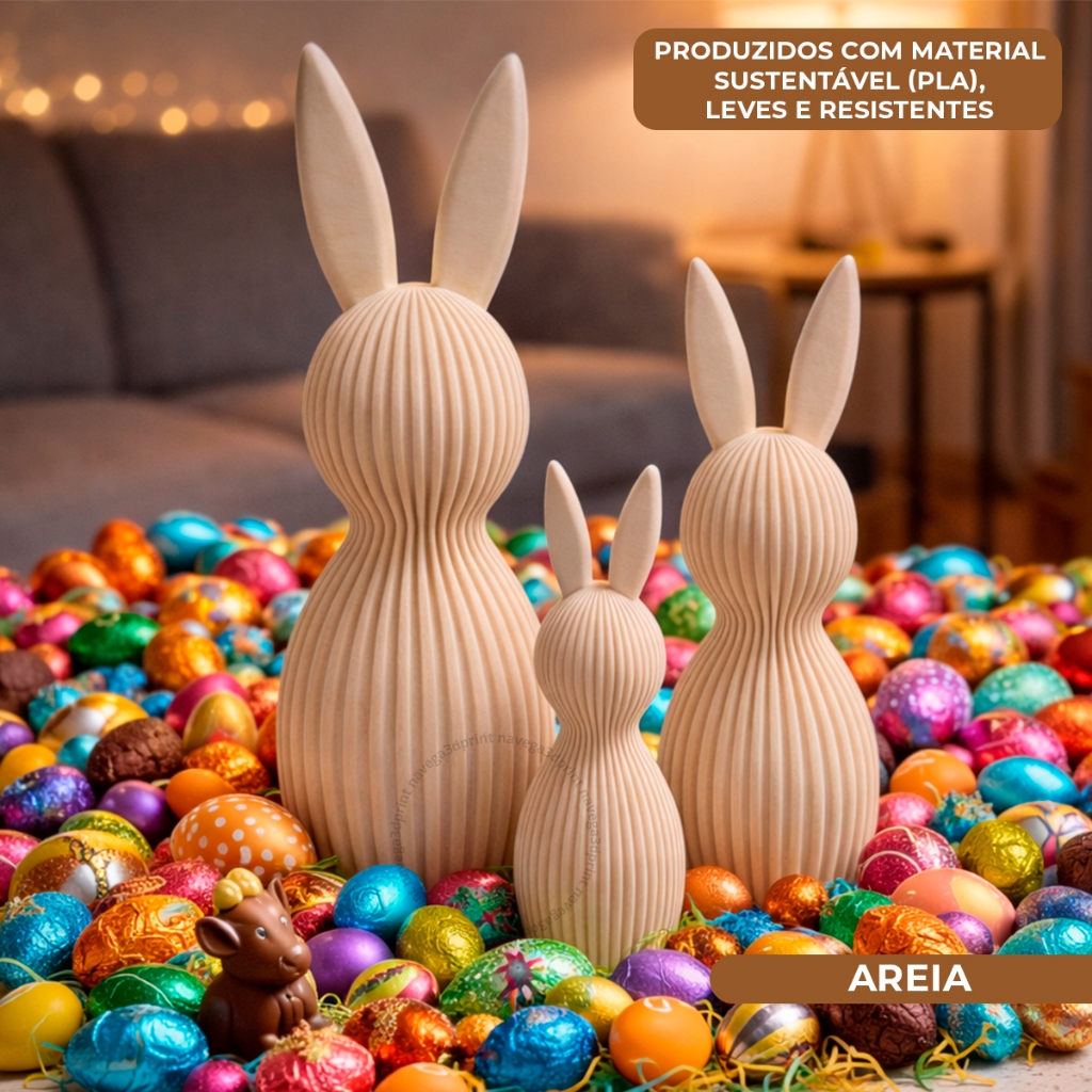 Kit 3 Coelhos Páscoa Enfeite Tamanho Grande Decoração 3D Moderno Minimalista Canelado