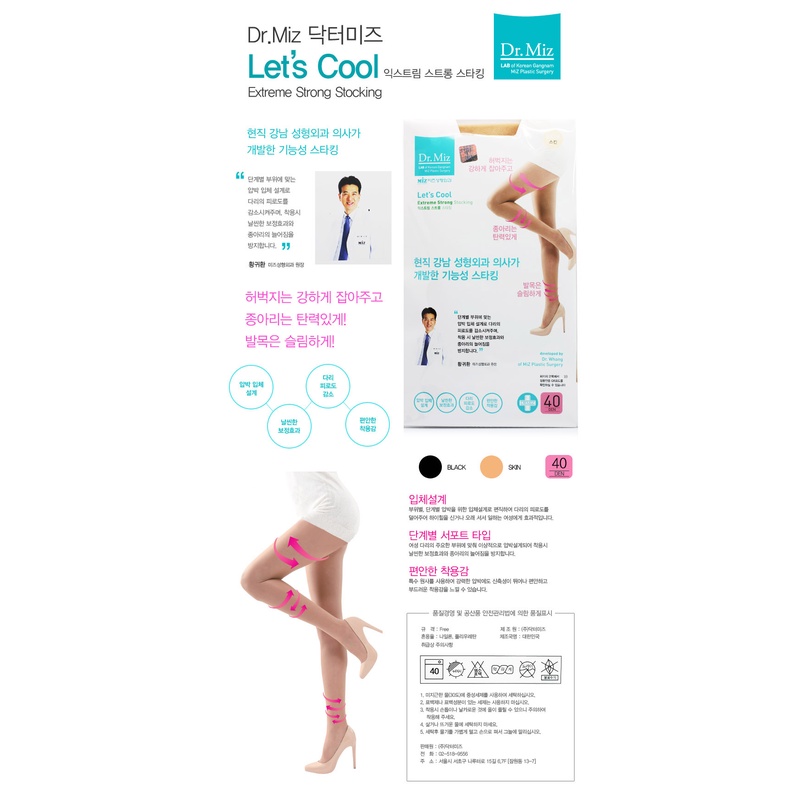 Dr.Miz Let's Cool Extreme Meias Forte 40DEN (Produtos Genuínos Coreanos)
