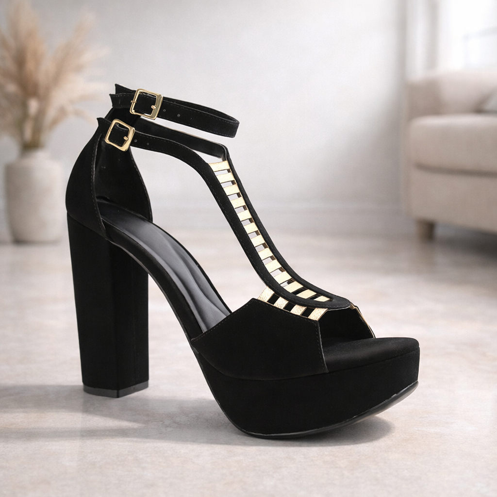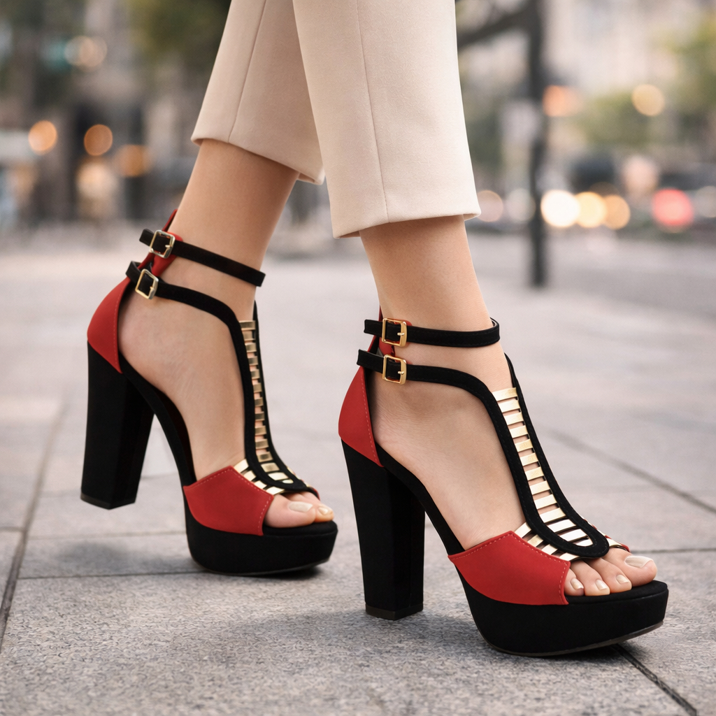 Sandália Feminina Plataforma Meia Pata Salto Alto Grosso Confortável Dia a Dia