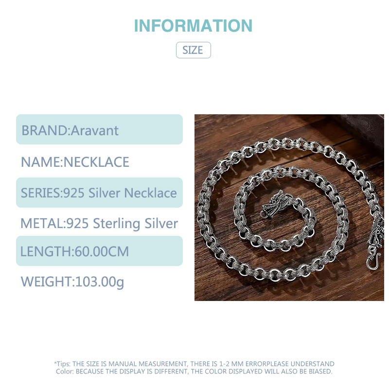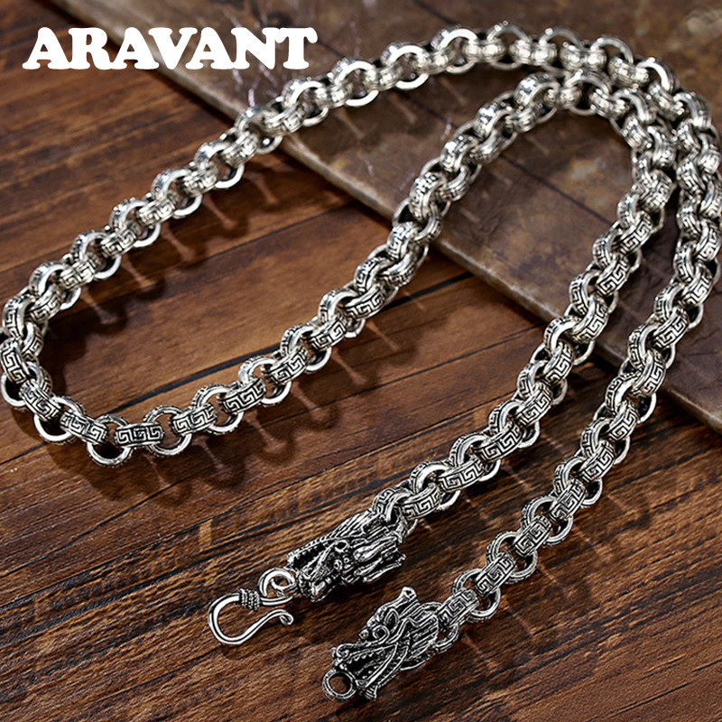 Aravant 925 Prata Retro Dragão Colar Corrente Para Homens Mulheres Moda Jóias