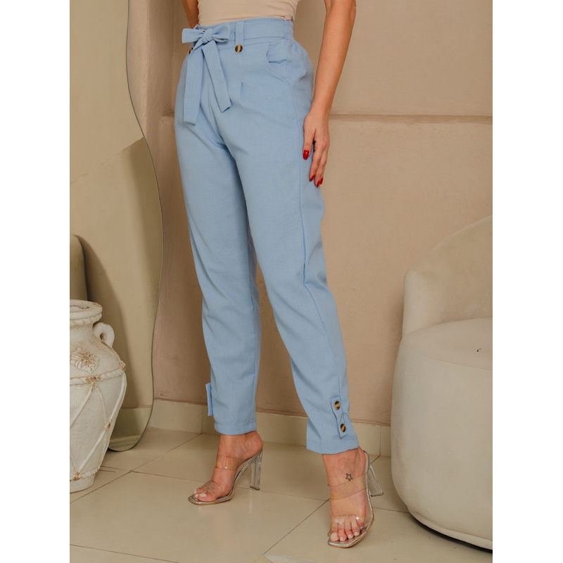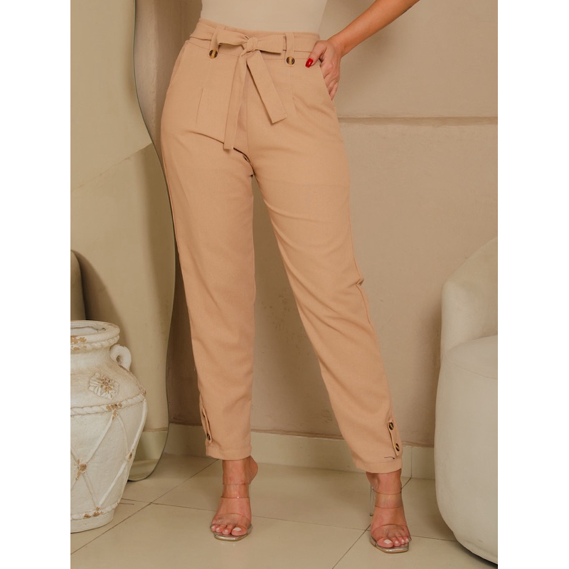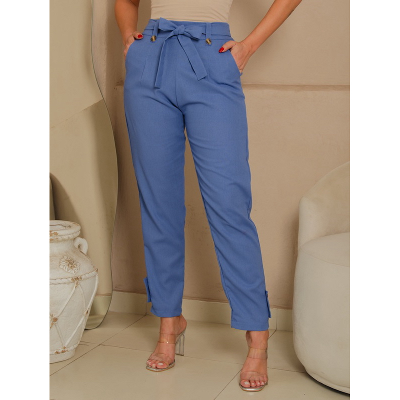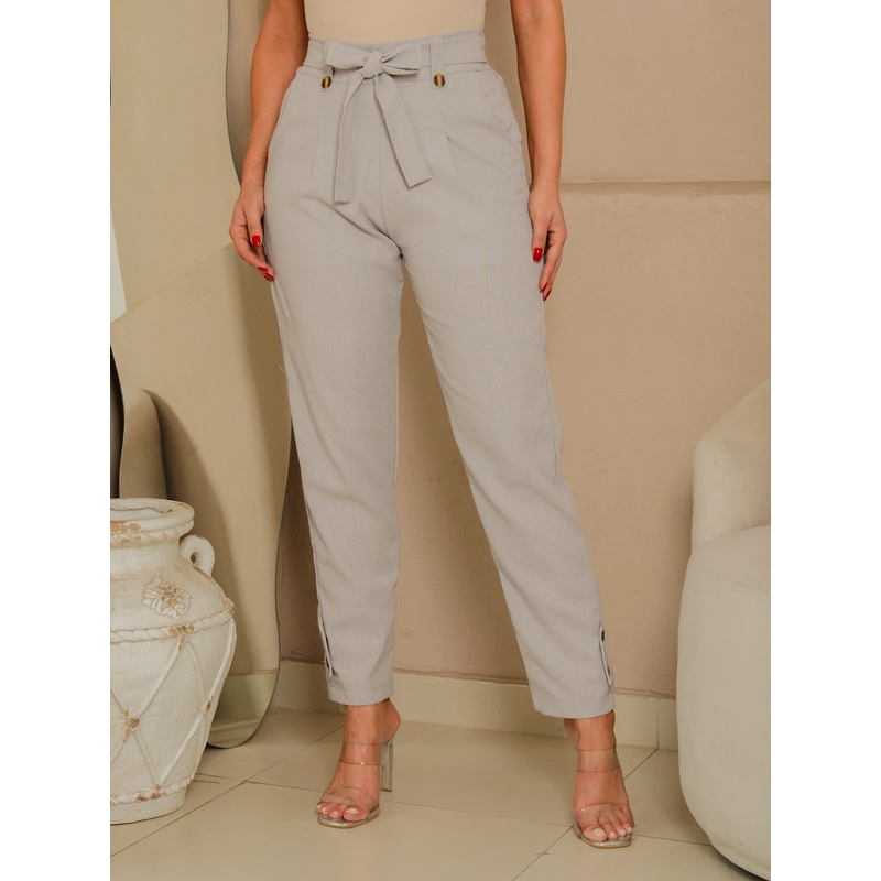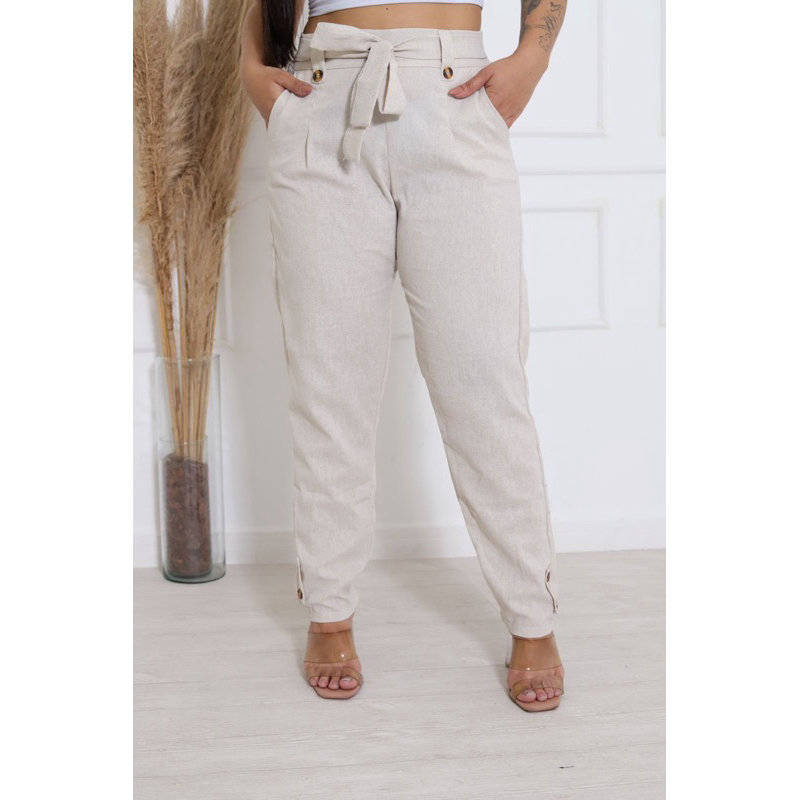 Calça social Feminina de Linho Elegante en costa con elástico ten forrado por dentro Botões