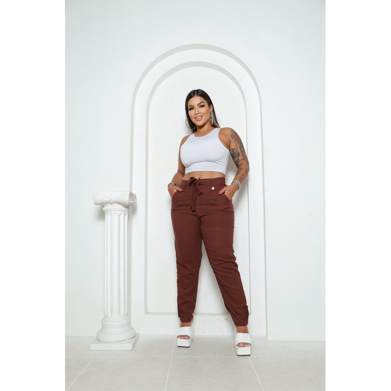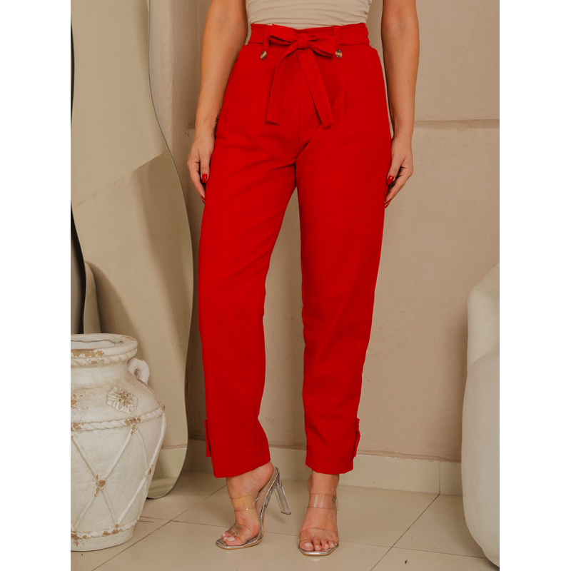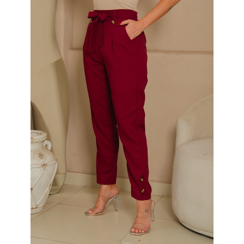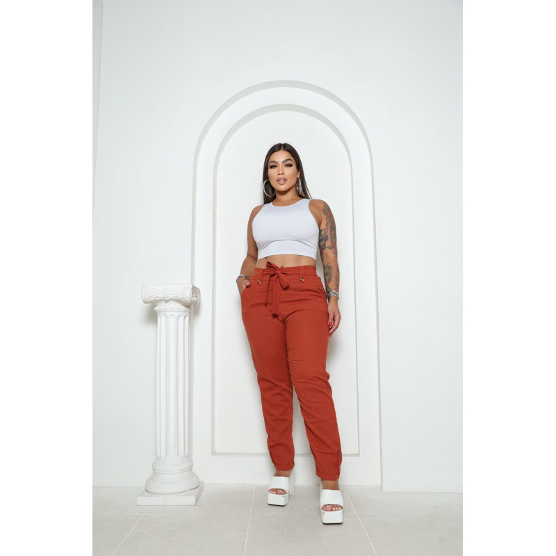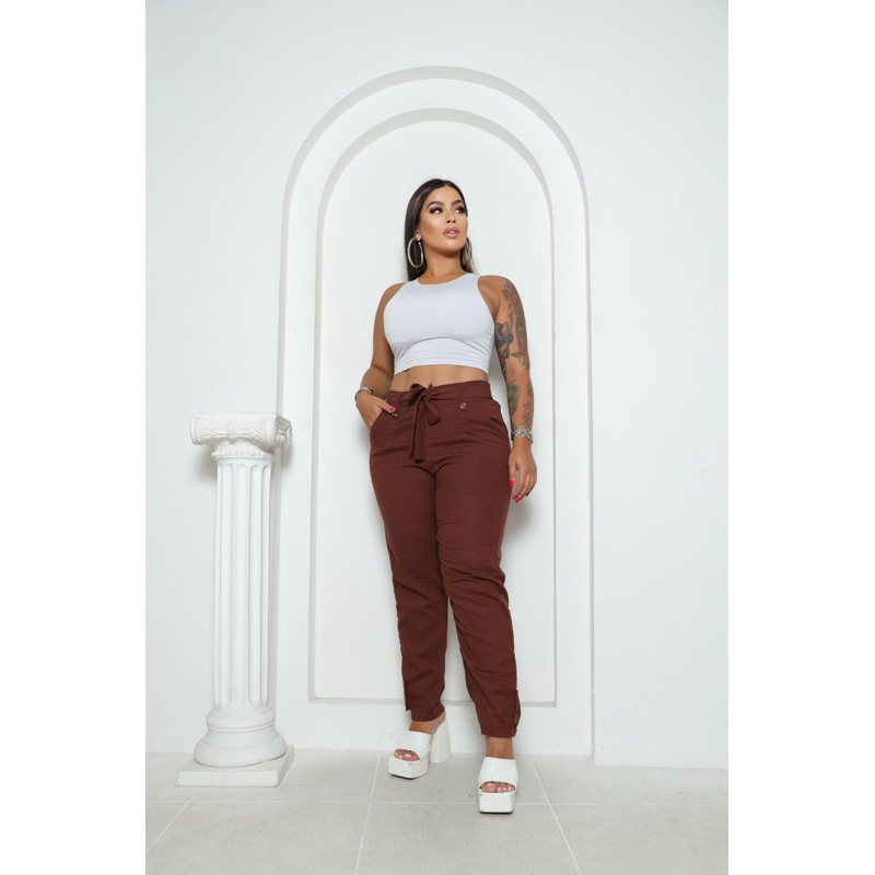 Calça social Feminina de Linho Elegante en costa con elástico ten forrado por dentro Botões