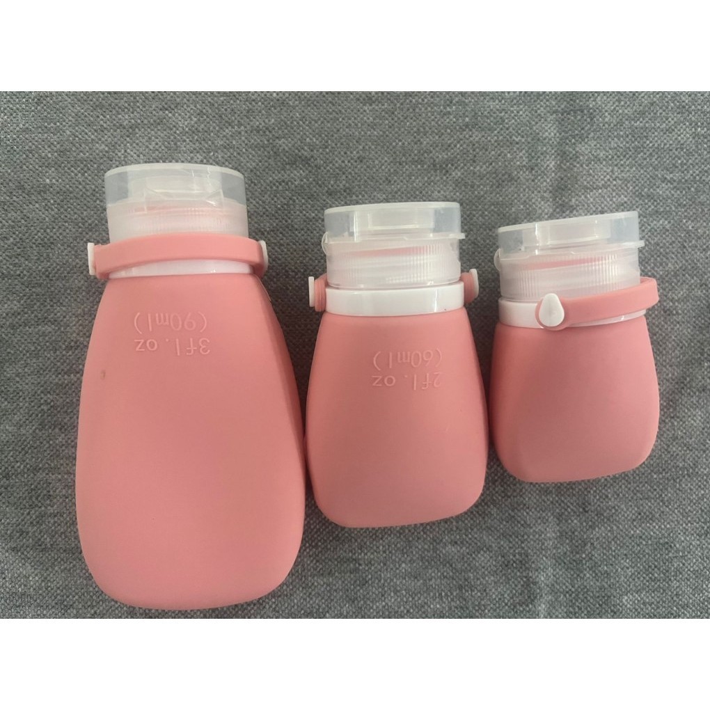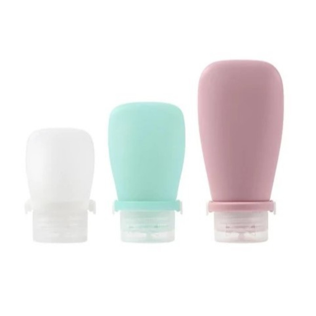 Kit 3 Frasco De Cosmético 30/60/90ml Silicone Para Viagem Portátil Shampoo Creme Loção Sabonete