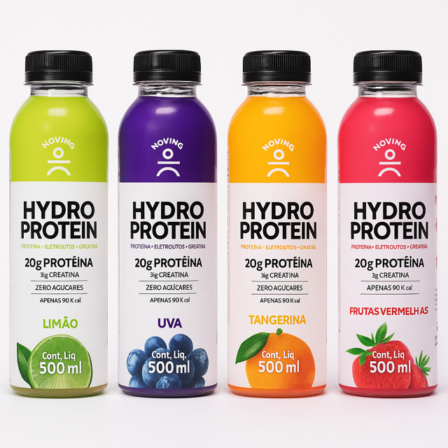 Kit Isotônico Hydro Protein Moving - Limão Uva Tangerina Frutas Vermelhas - 4x500ml - 20g Proteinas Zero Açucares