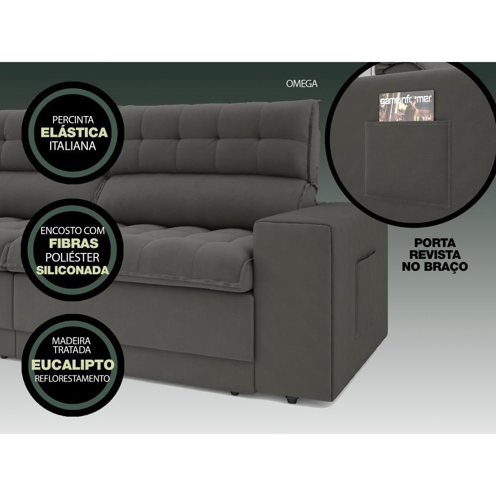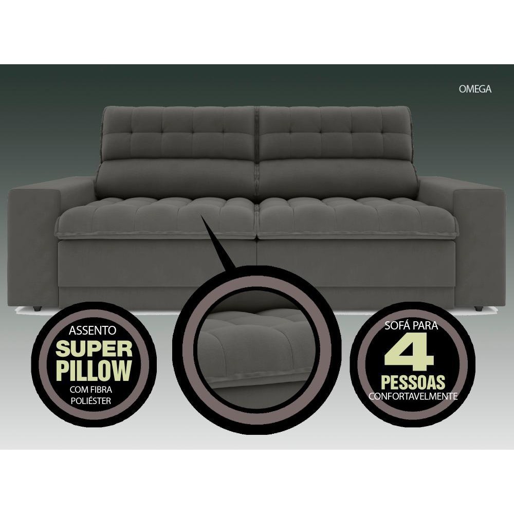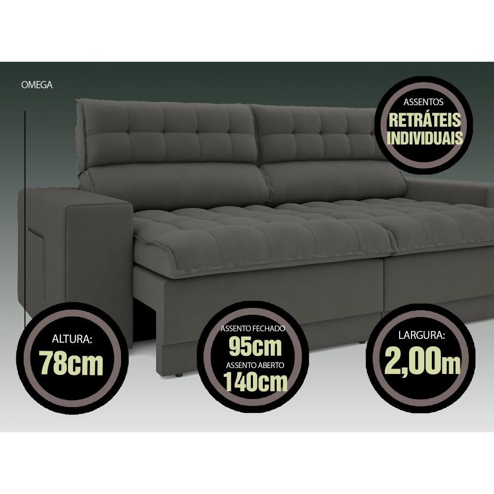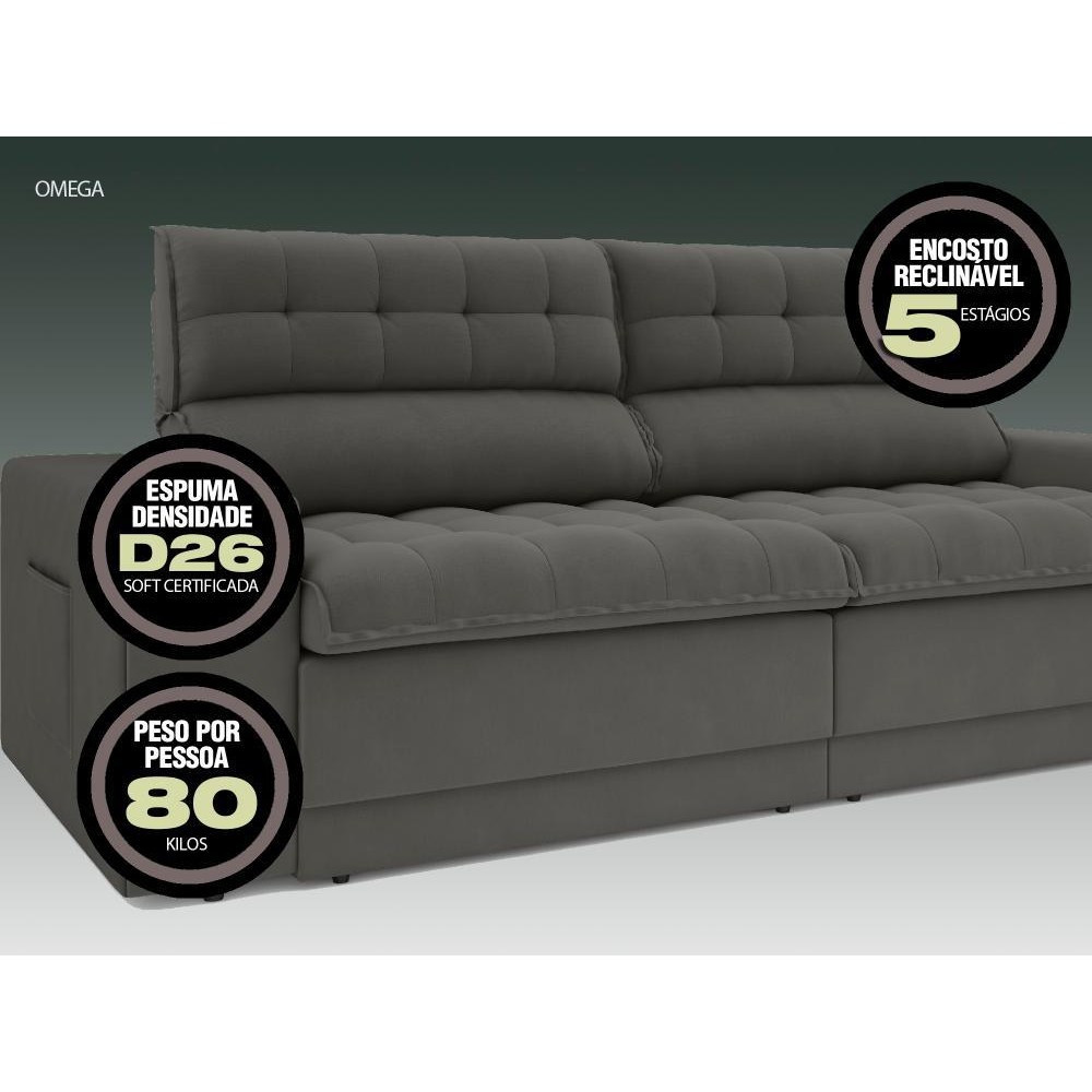 Sofá Omega 2,00m Assento Retrátil e Reclinável Velosuede - NETSOFAS