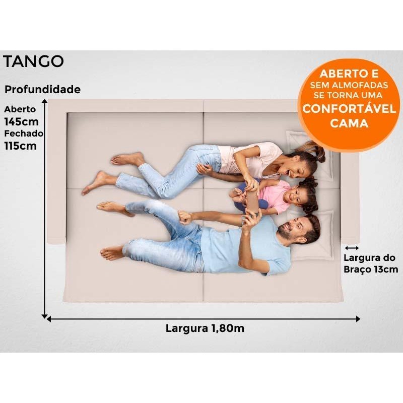 Sofá Tango 1,80m sem caixa, Retrátil e Reclinável Velosuede Areia - NETSOFAS