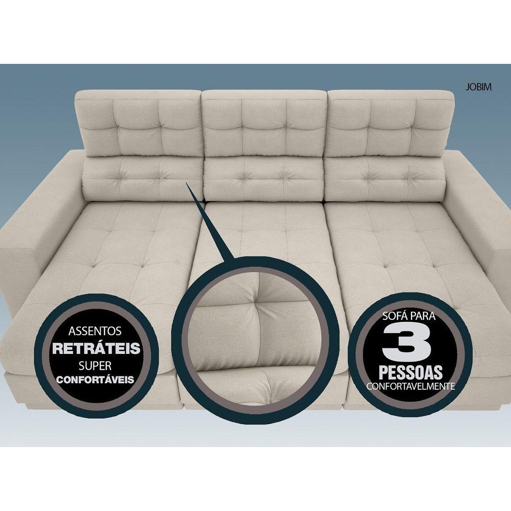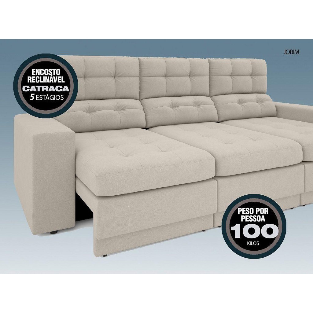 Sofá 3 Lugares Net Jobim Assento Retrátil e Reclinável Areia 2,05m (L)