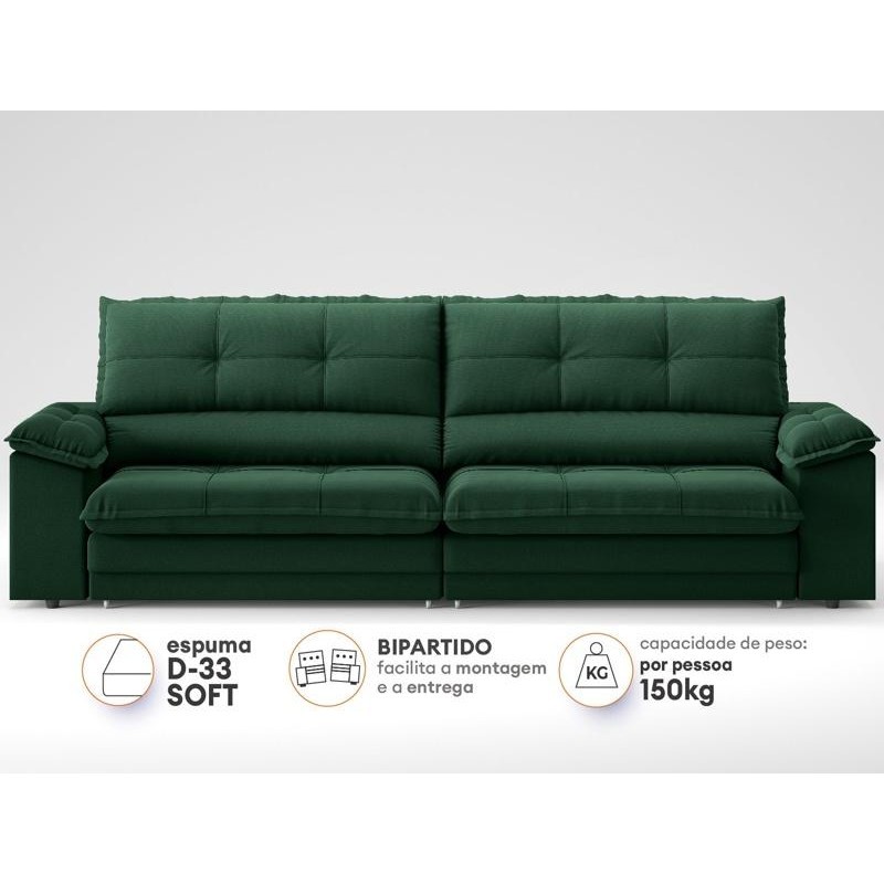 Sofá com Carregador USB Retrátil Reclinável Monaco 2,10m Velosuede Verde - NETSOFAS