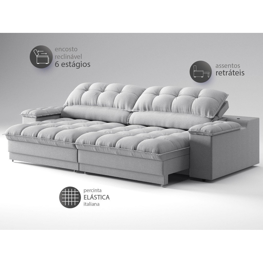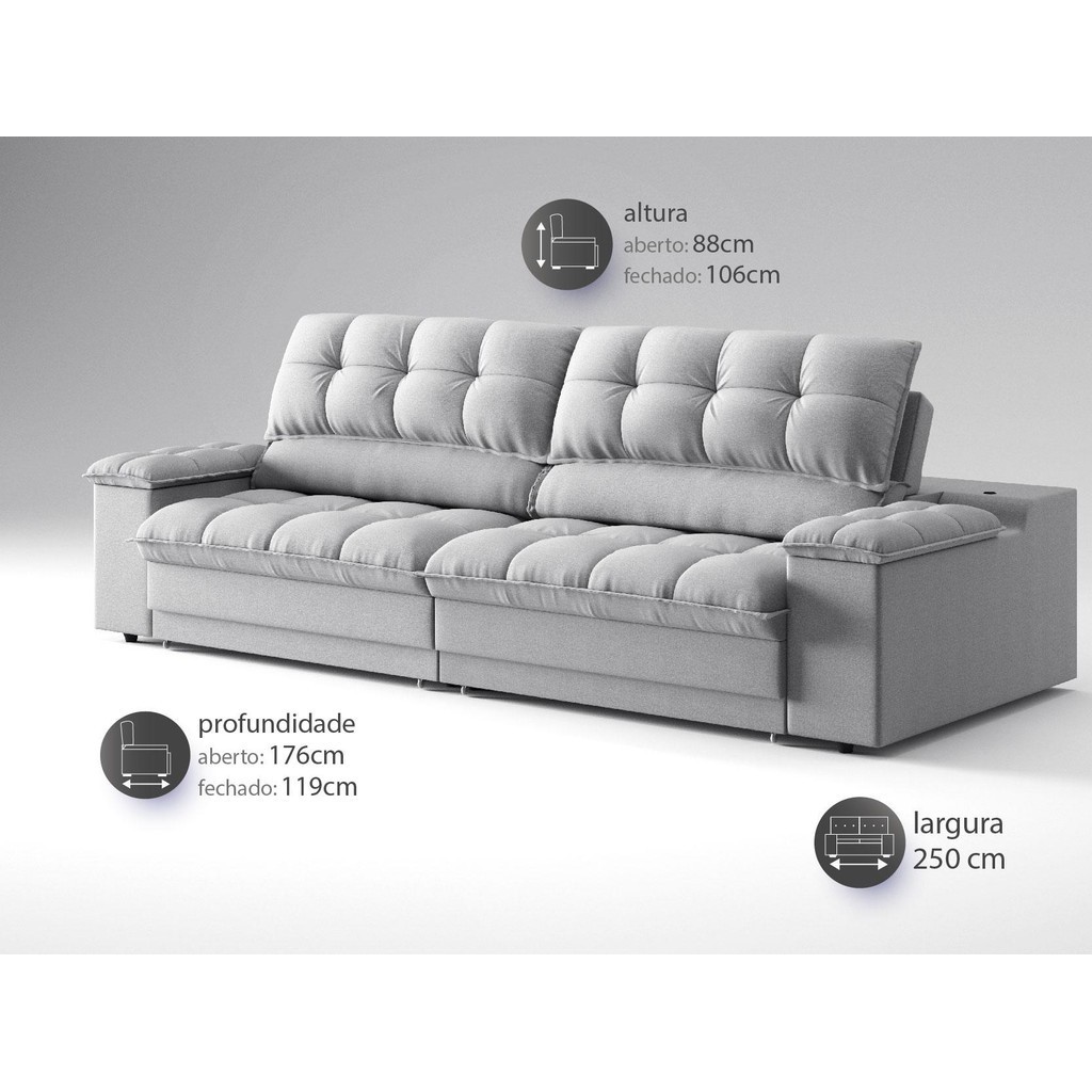 Sofá com Porta Copos e Carregador USB Ret Rec Luke 2,50m Linho Soft Prata - NETSOFAS