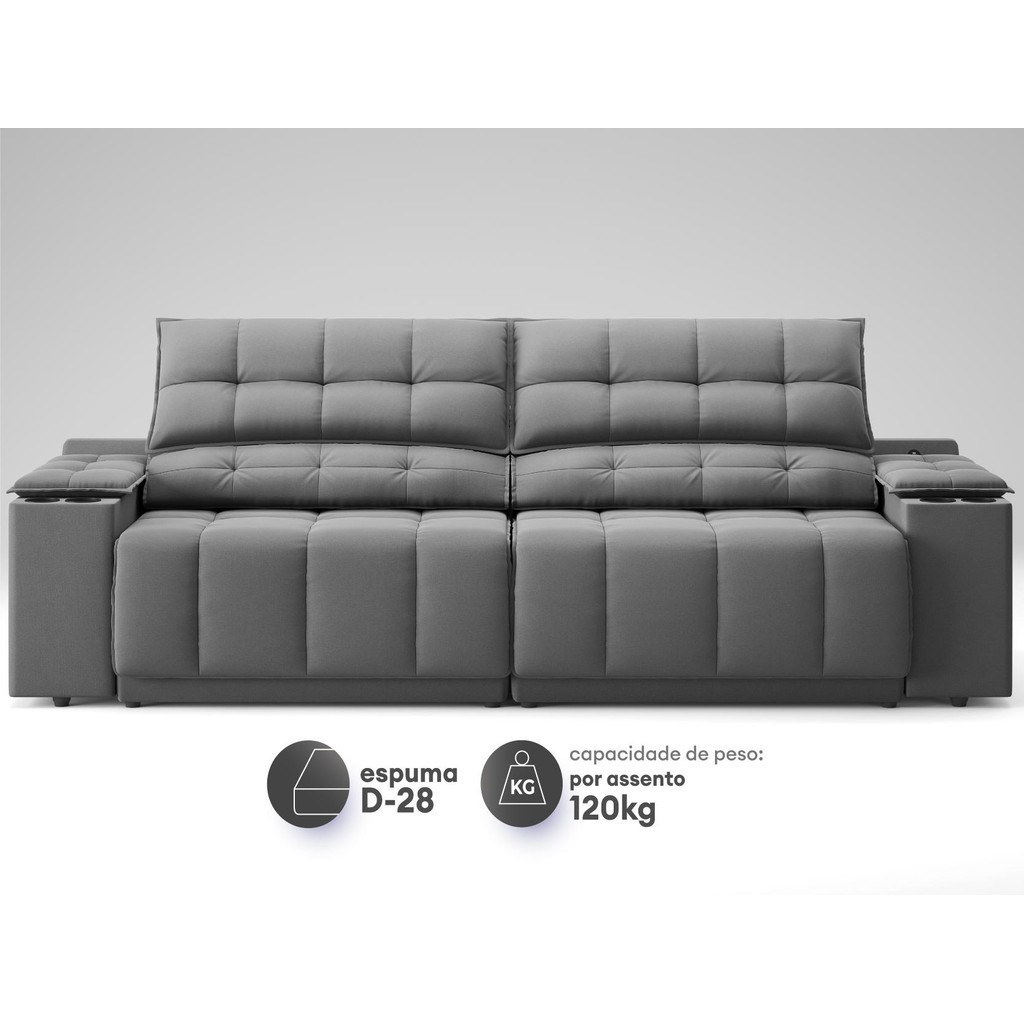 Sofá com Porta Copos Carregador USB Ret Rec Samurai 2,00m Velosuede Grafite - NETSOFAS