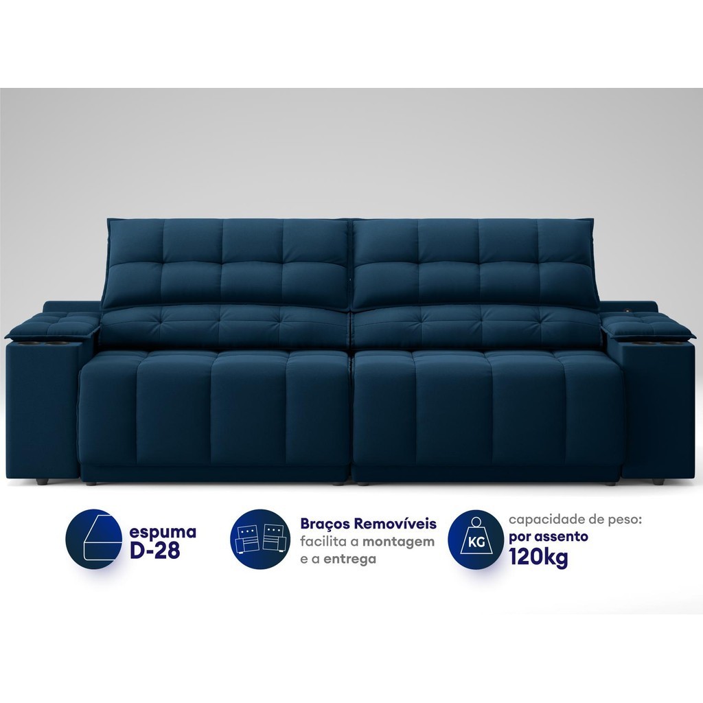 Sofá com Porta Copos Carregador USB Ret Rec Samurai 2,30m Velosuede Petróleo - NETSOFAS