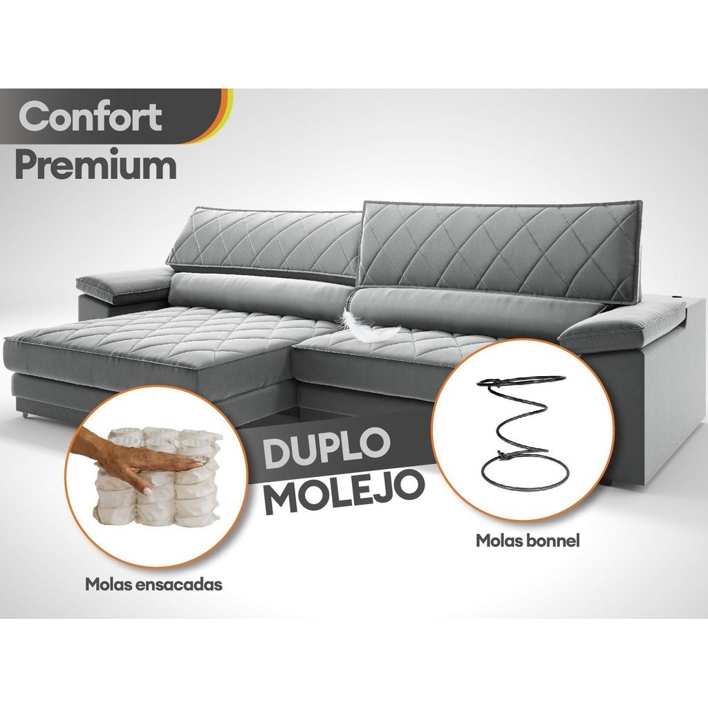 Sofá de Duplo Molejo com Carregador USB, Retrátil e Reclinável Valencia 2,90m Veludocristal Cinza- NETSOFAS