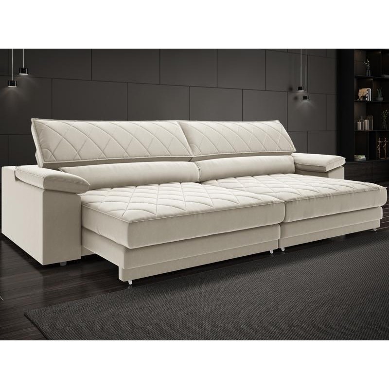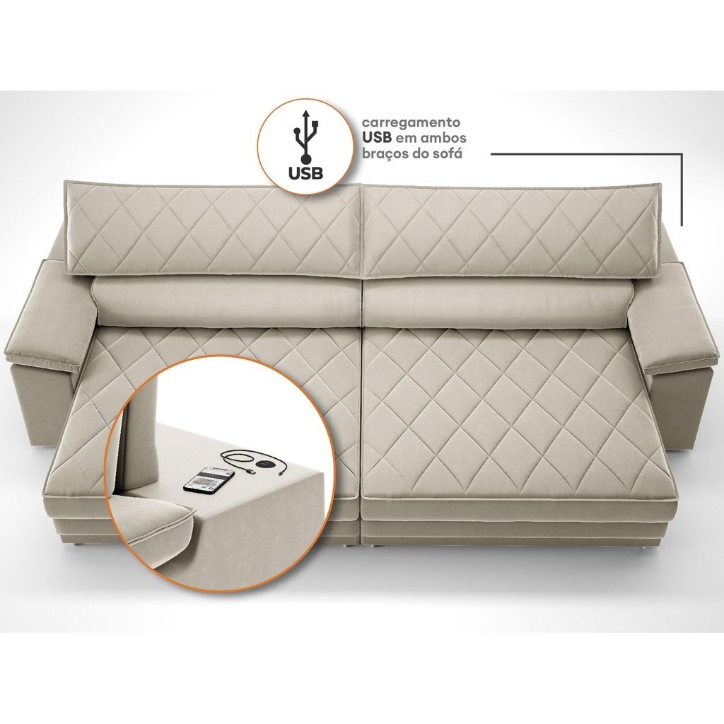 Sofá de Duplo Molejo com Carregador USB, Retrátil e Reclinável Valencia 2,90m Veludocristal Areia- NETSOFAS