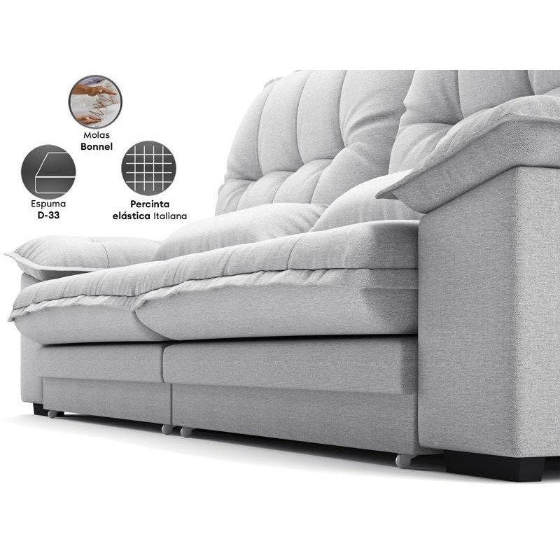 Sofá Bergamo 2,90m Retrátil e Reclinável Linho Soft Prata - NETSOFAS