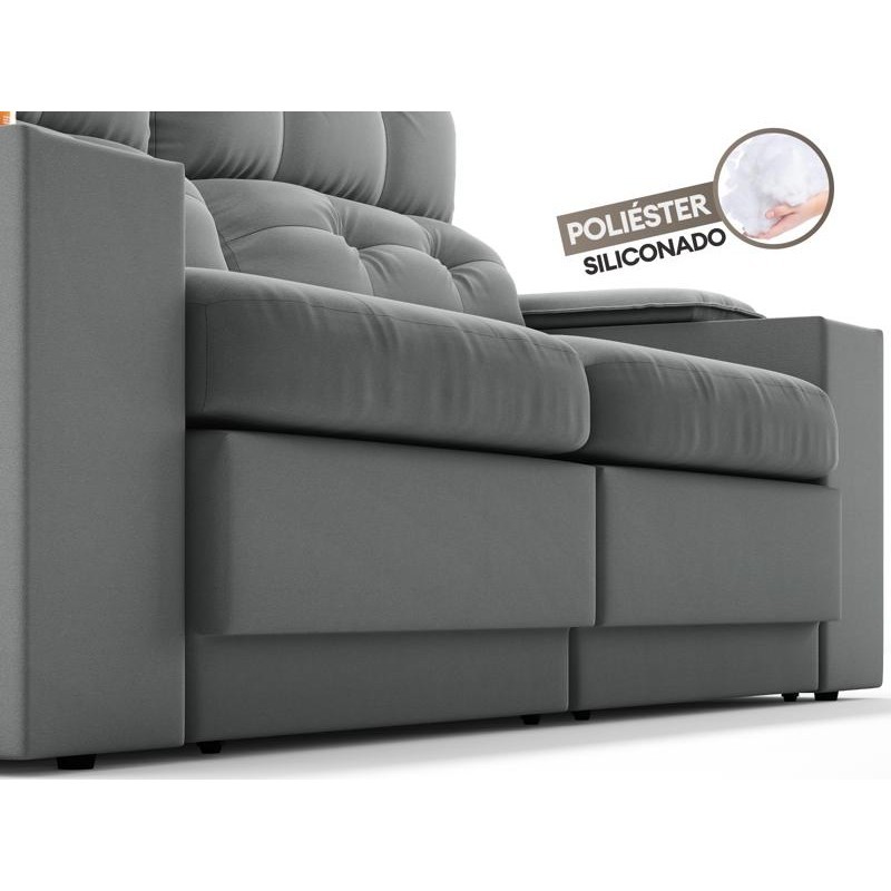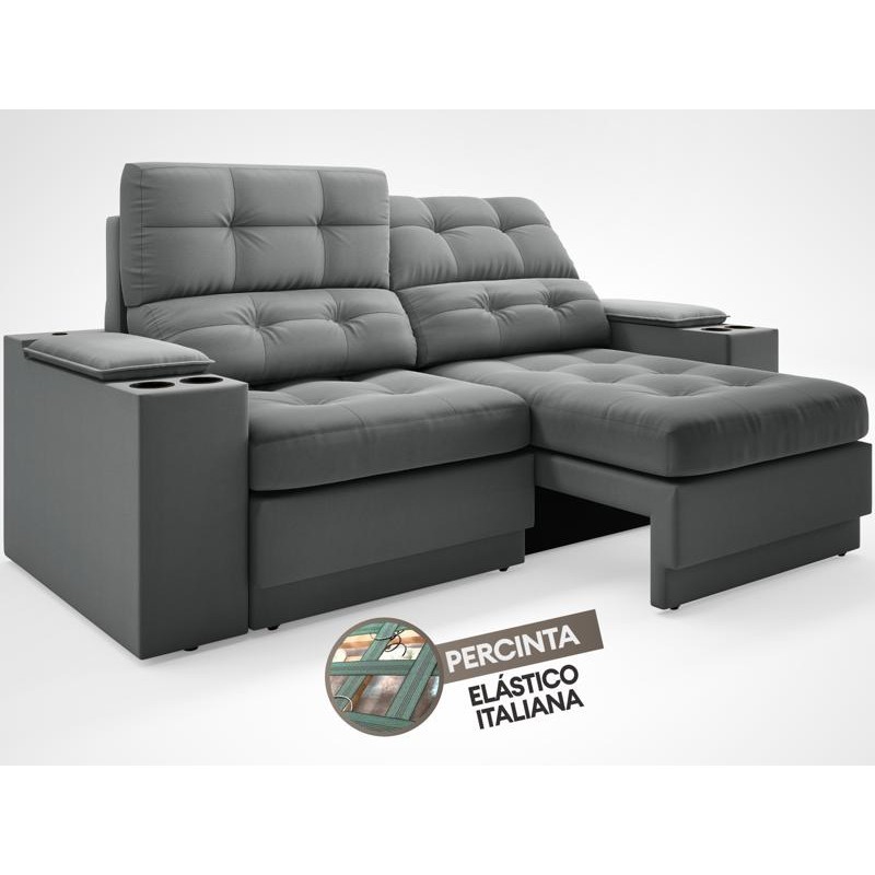 Sofá com Porta Copos e Carregador USB Eureka 1,70m Assento Retrátil e Reclinável Velosuede Grafite - NETSOFAS