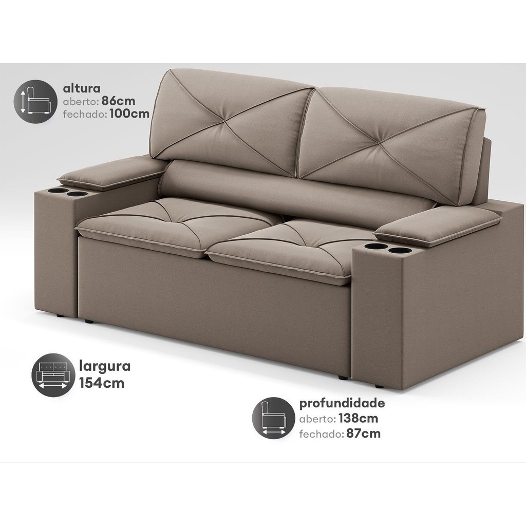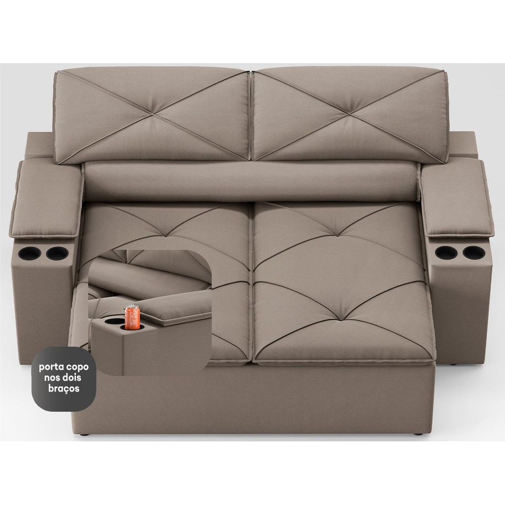 Sofá com Porta Copos Retrátil e Reclinável Pop 1,54m Velosuede Capuccino - NETSOFAS