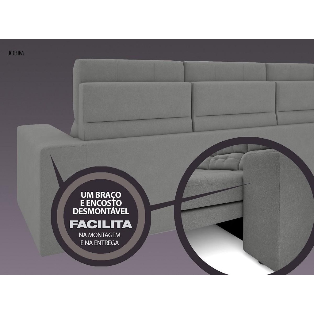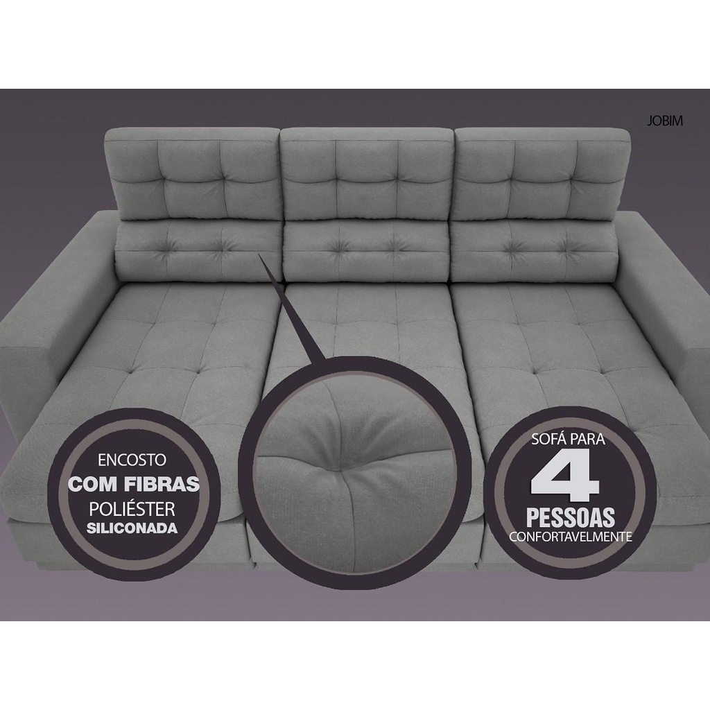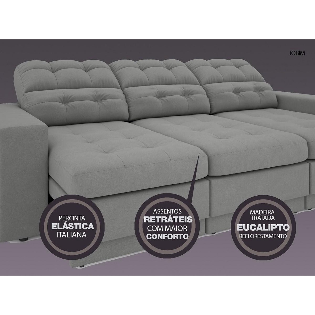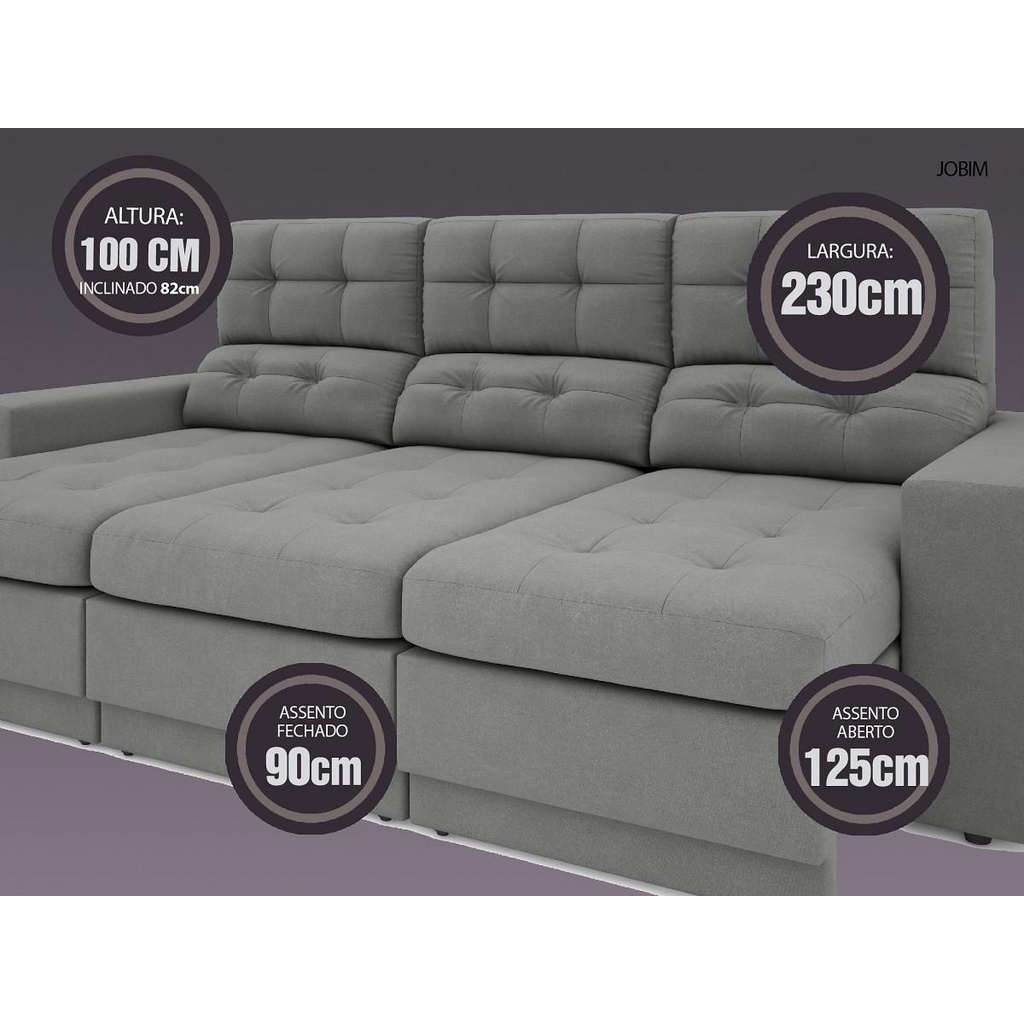 Sofá 4 Lugares Net Jobim Assento Retrátil e Reclinável Grafite 2,30m (L)
