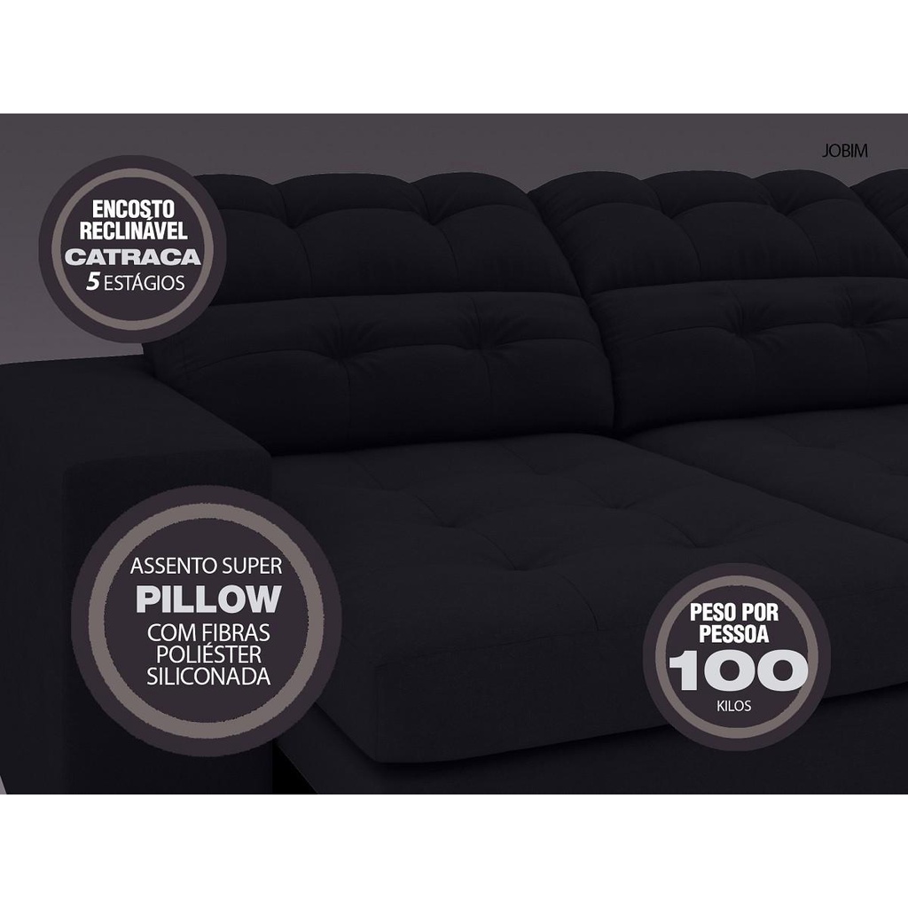 Sofá 4 Lugares Net Jobim Assento Retrátil e Reclinável Preto 2,30m (L)