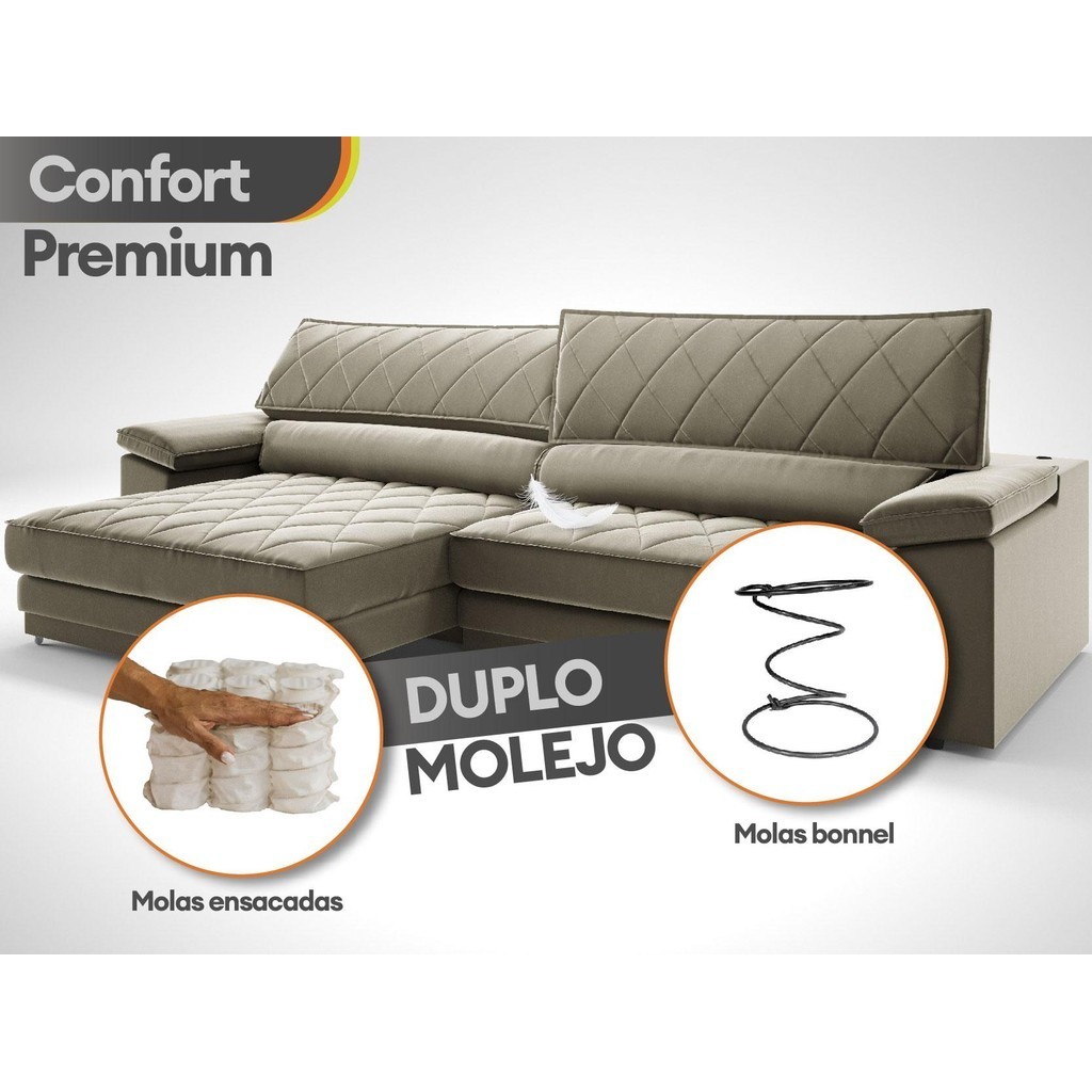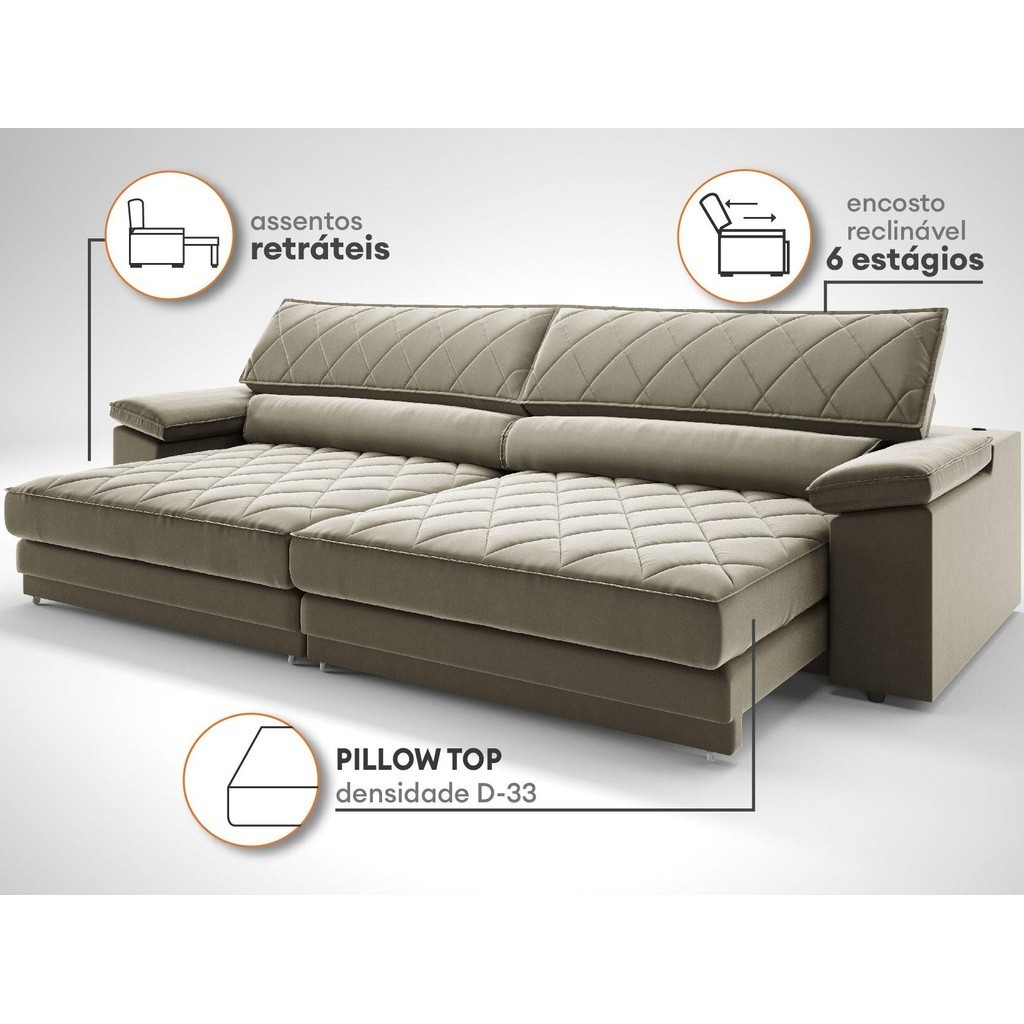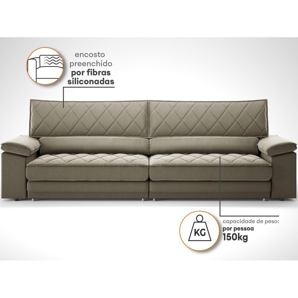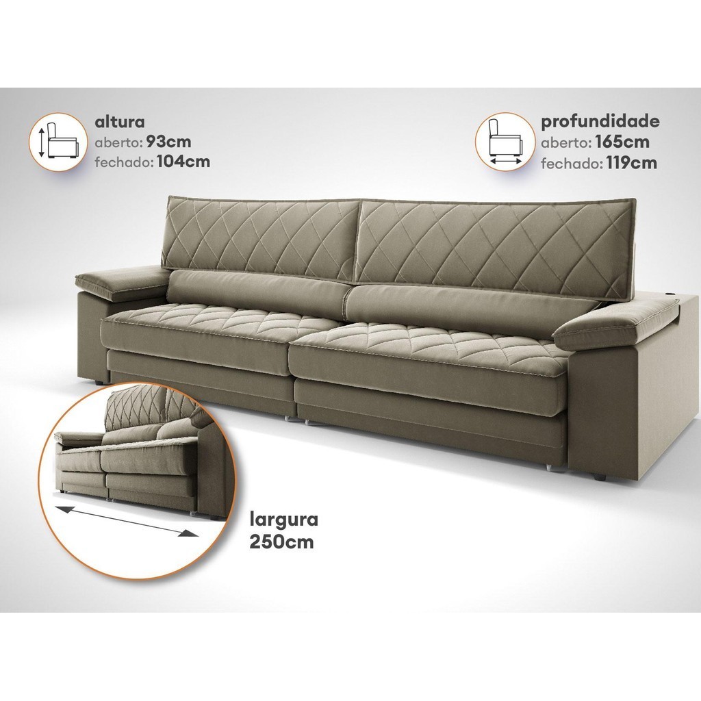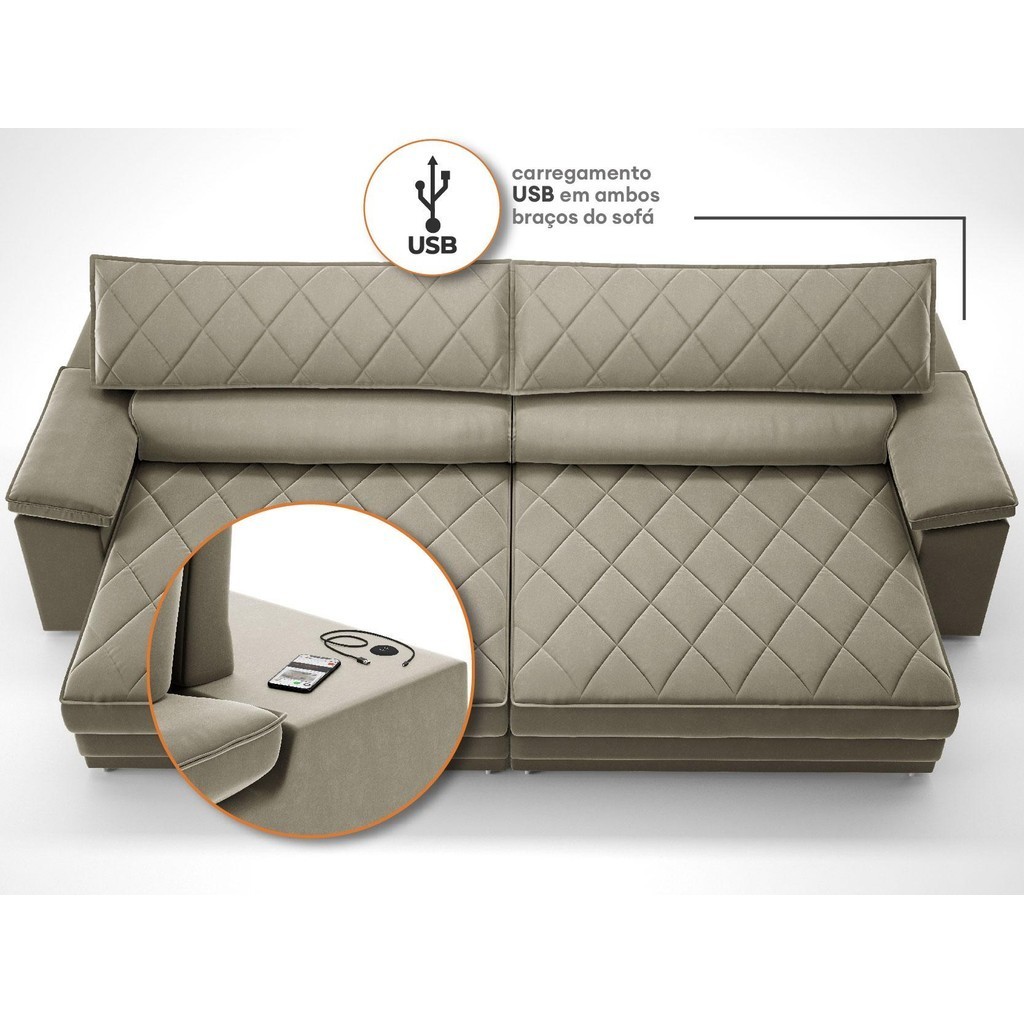 Sofá de Duplo Molejo com Carregador USB, Retrátil e Reclinável Viena 2,50m Veludocristal Fendi- NETSOFAS