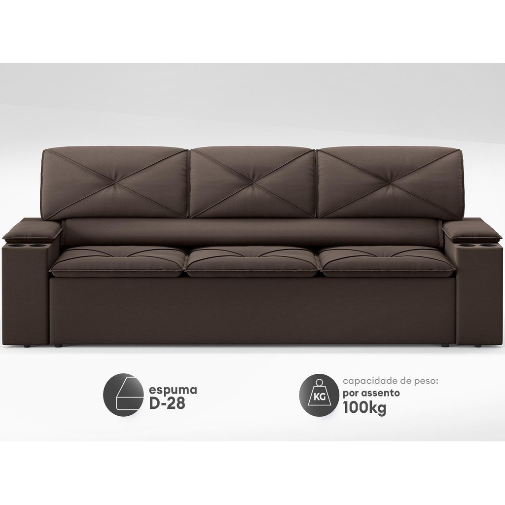 Sofá com Porta Copos Retrátil e Reclinável Pop 2,05m Velosuede Chocolate - NETSOFAS