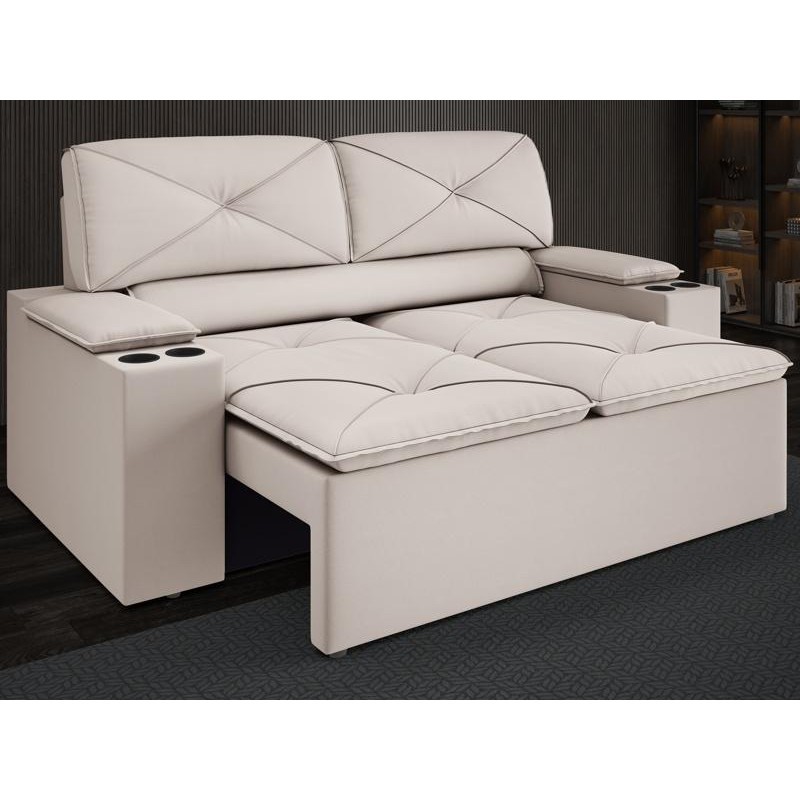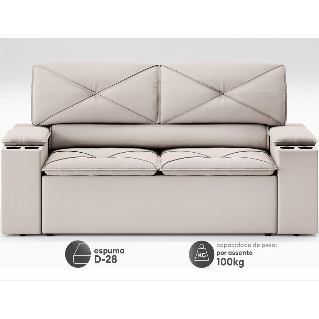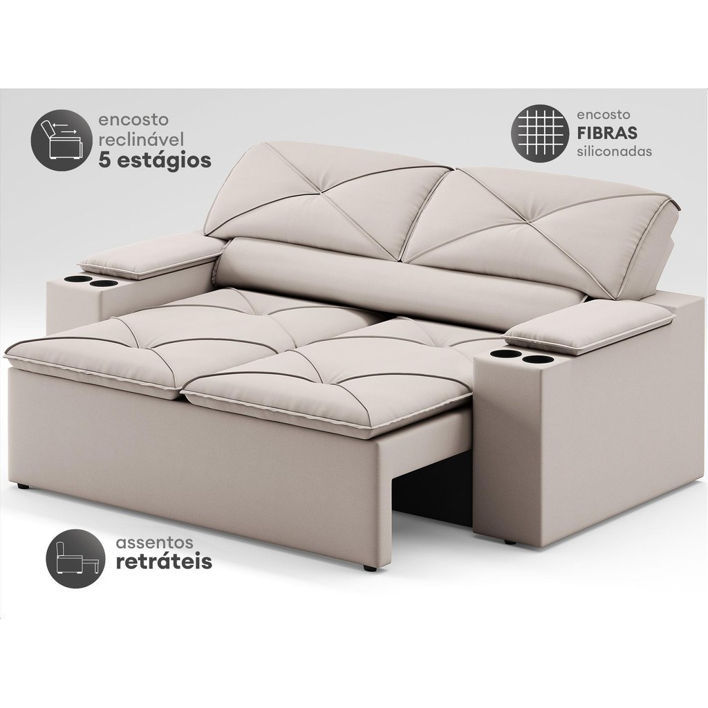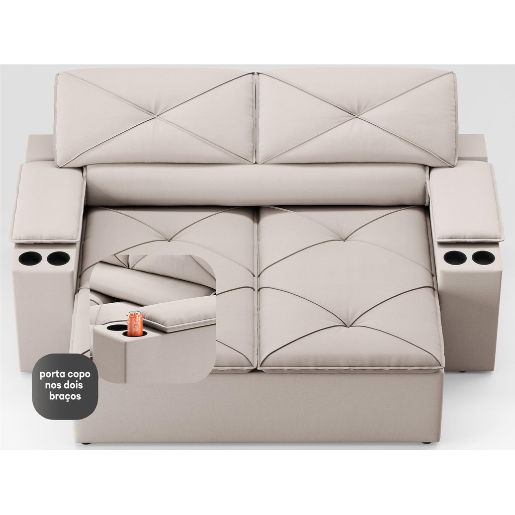 Sofá com Porta Copos Retrátil e Reclinável Pop 1,54m Velosuede Areia - NETSOFAS