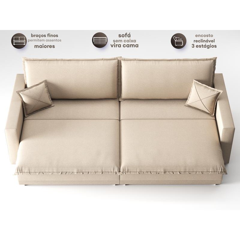 Sofá Tango 2,00m sem caixa, Retrátil e Reclinável Linho Soft Bege - NETSOFAS