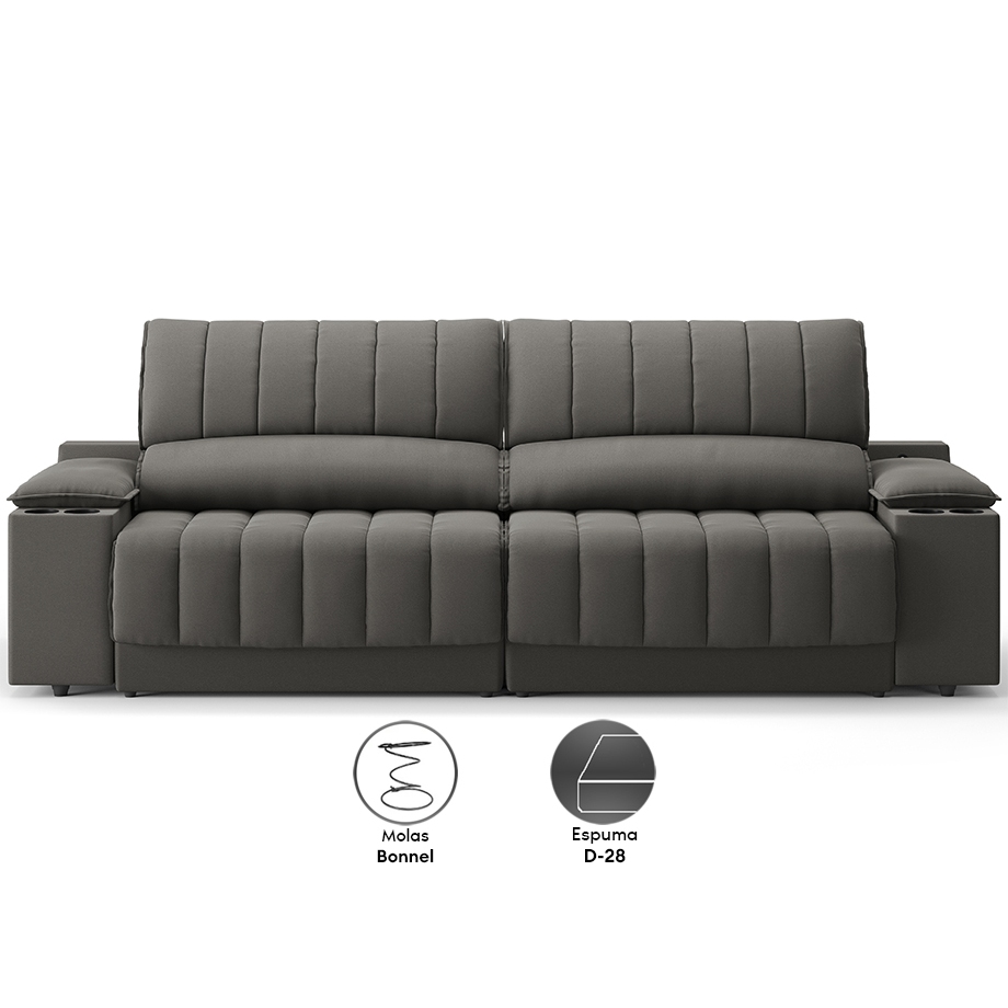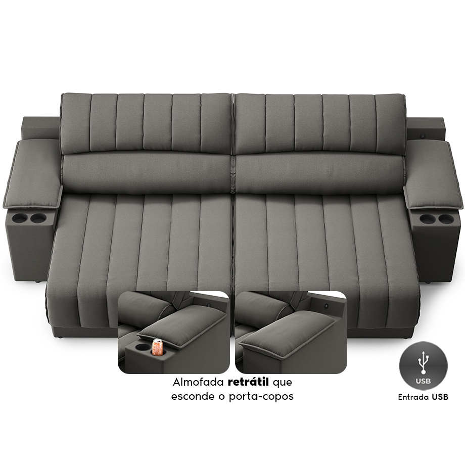 Sofá com Porta Copos Carregador USB Ret Rec Murano 2,00m Velosuede - NETSOFAS