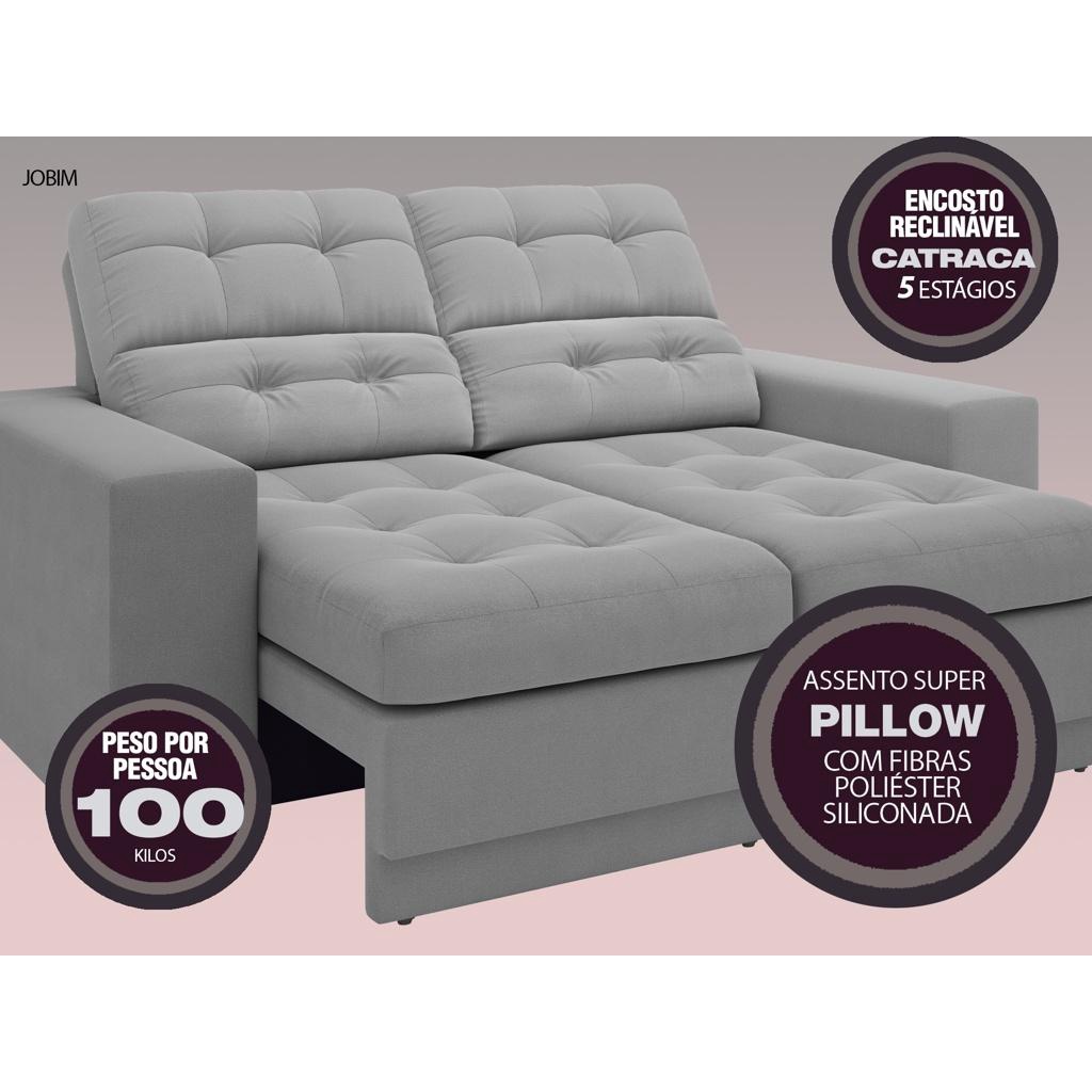 Sofá Jobim 1,70m Assento Retrátil e Reclinável Velosuede Grafite - NETSOFAS