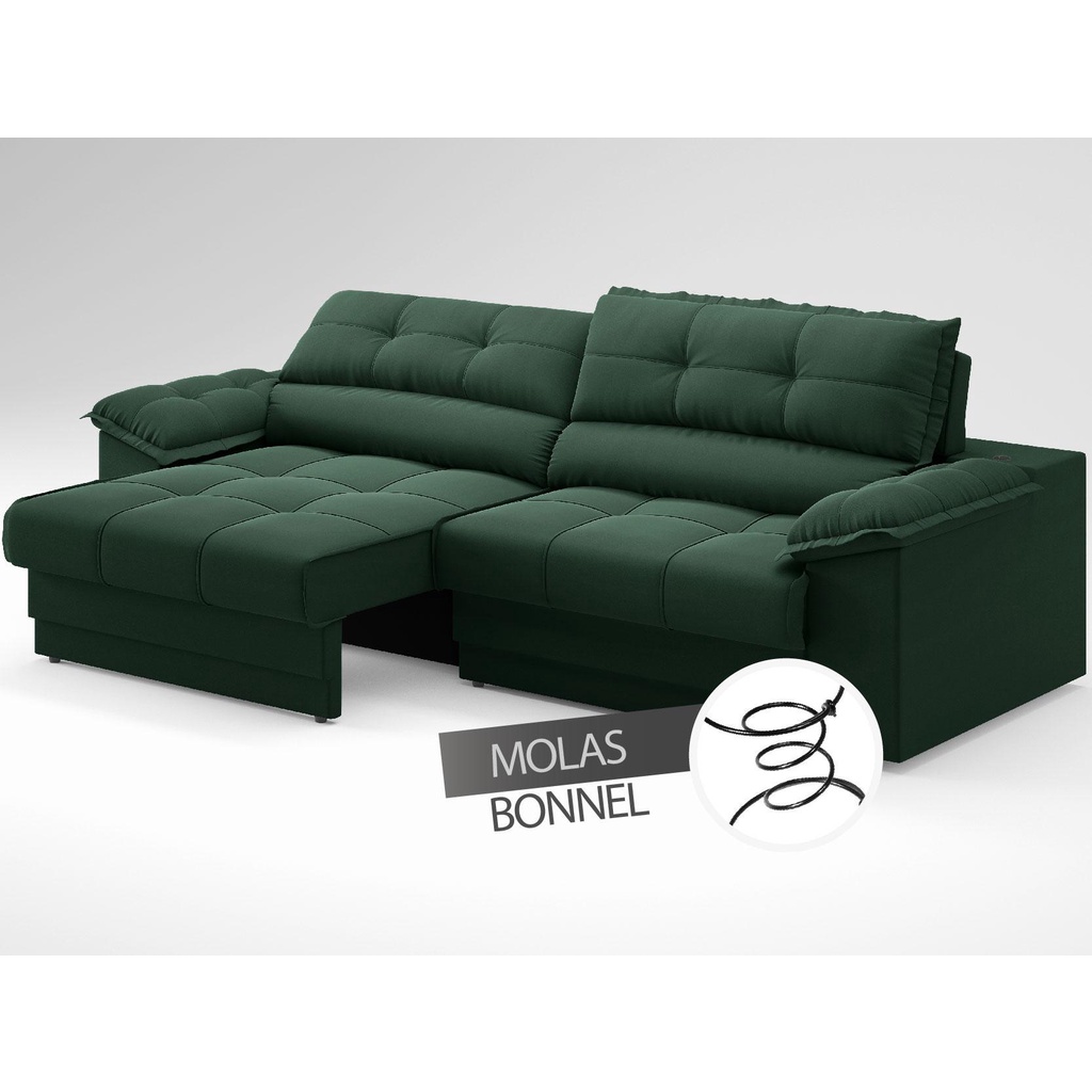 Sofá com Carregador USB Retrátil Reclinável Mimo 2,30m Velosuede Verde - NETSOFAS