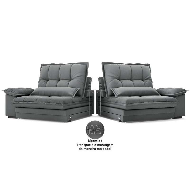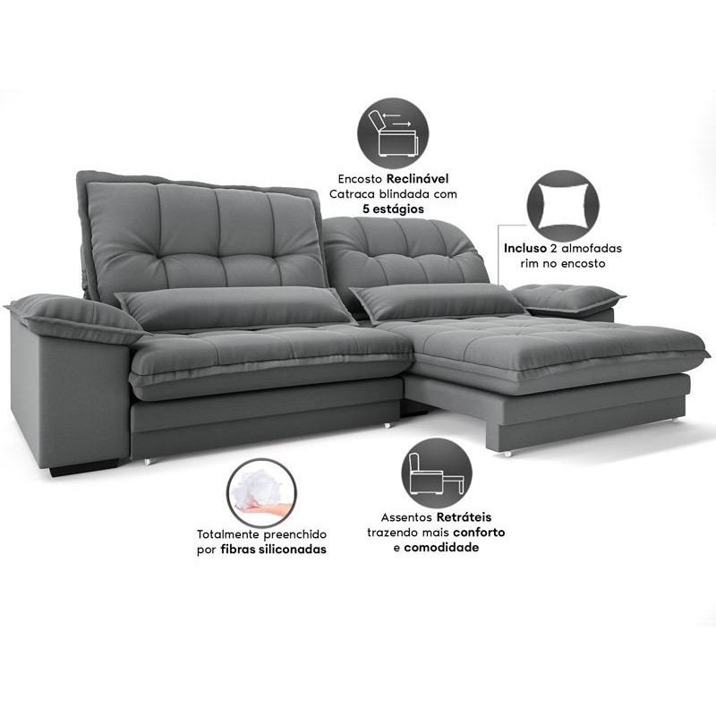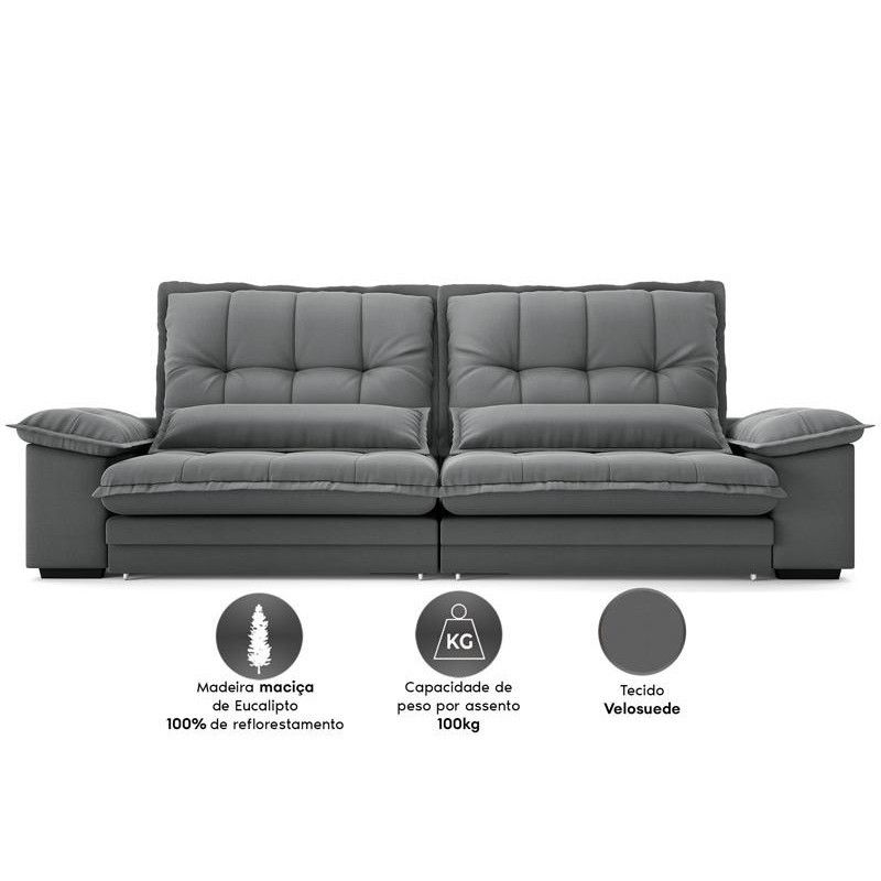 Sofá Bergamo 2,90m Assento Retrátil e Reclinável Velosuede Grafite - NETSOFAS