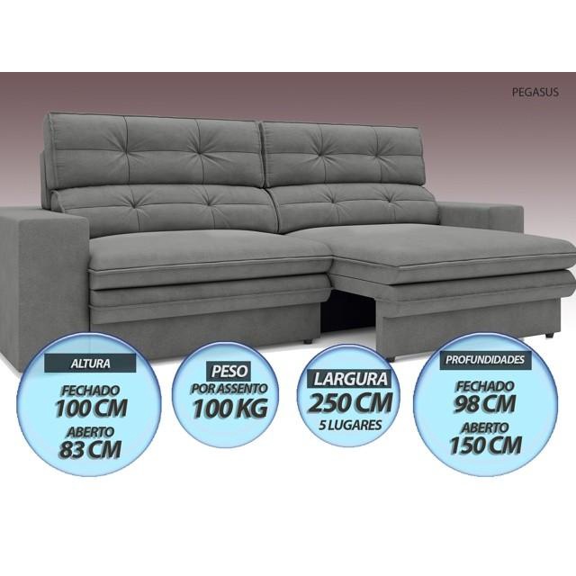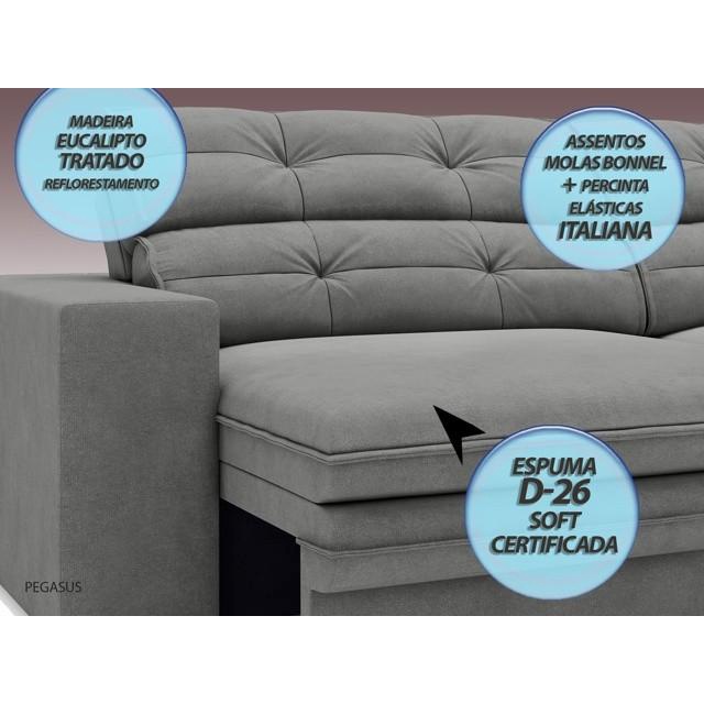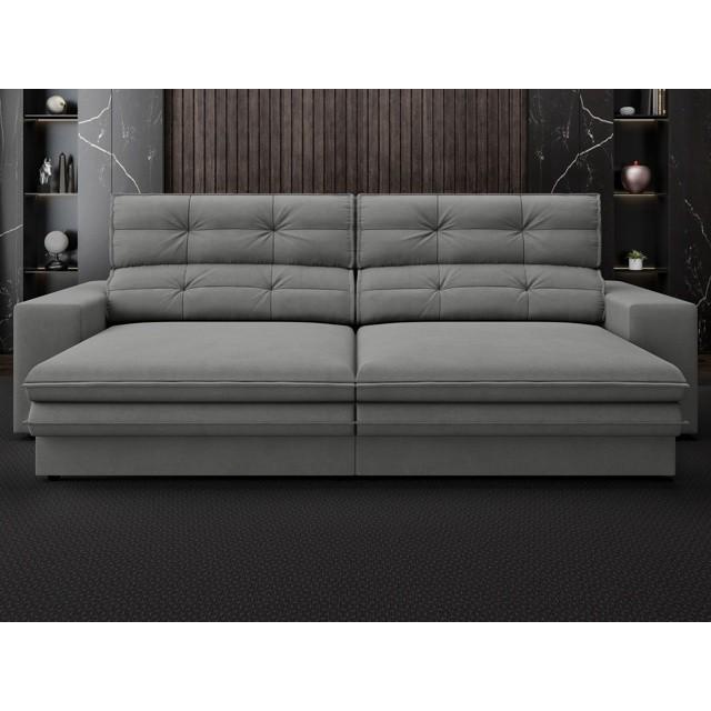 Sofá Pegasus 2,50m Assento Retrátil e Reclinável Velosuede Grafite - NETSOFAS