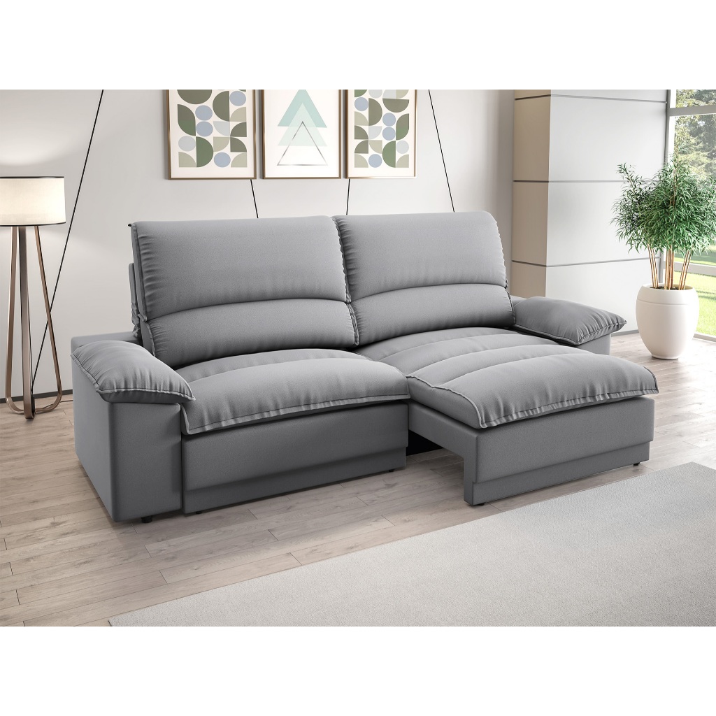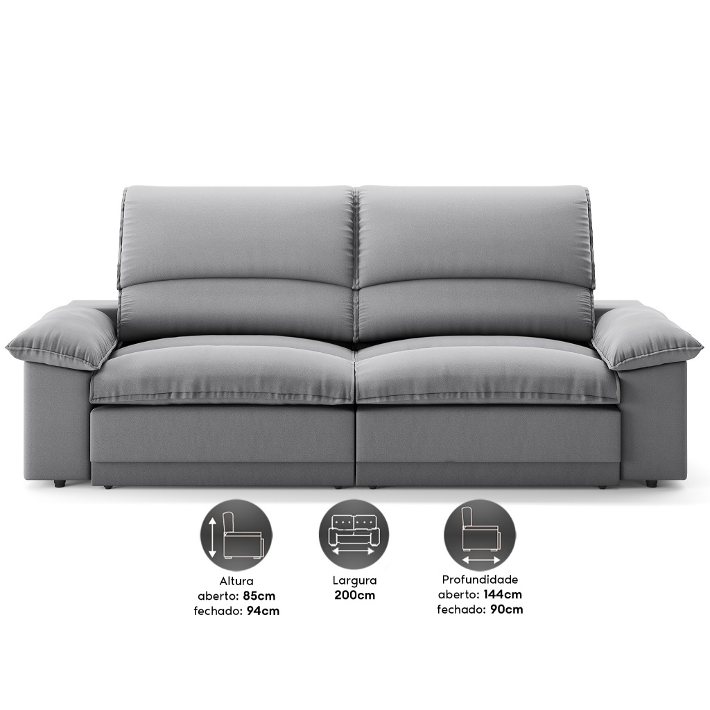 Sofá Plaza 2,00m com Molas no Assento Retrátil e Reclinável Velosuede - NETSOFAS