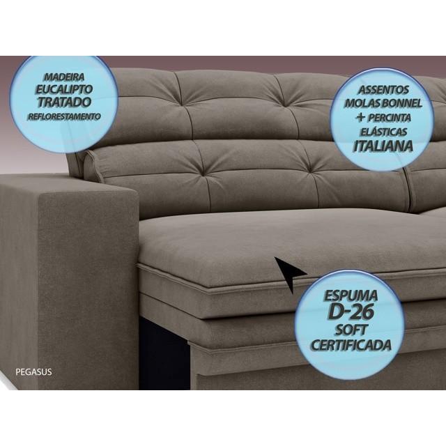 Sofá Pegasus 2,50m Assento Retrátil e Reclinável Velosuede Marrom - NETSOFAS