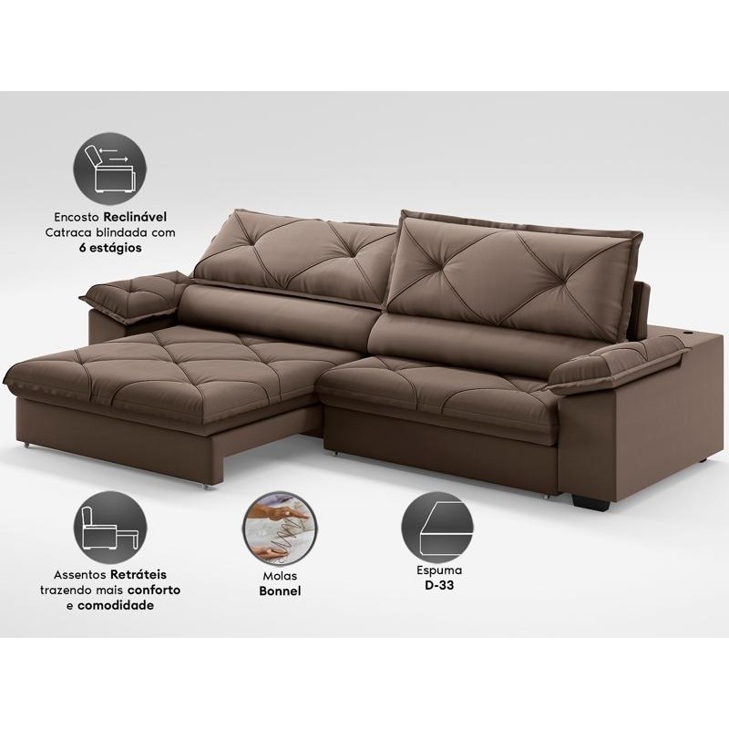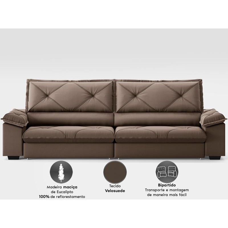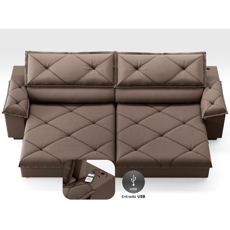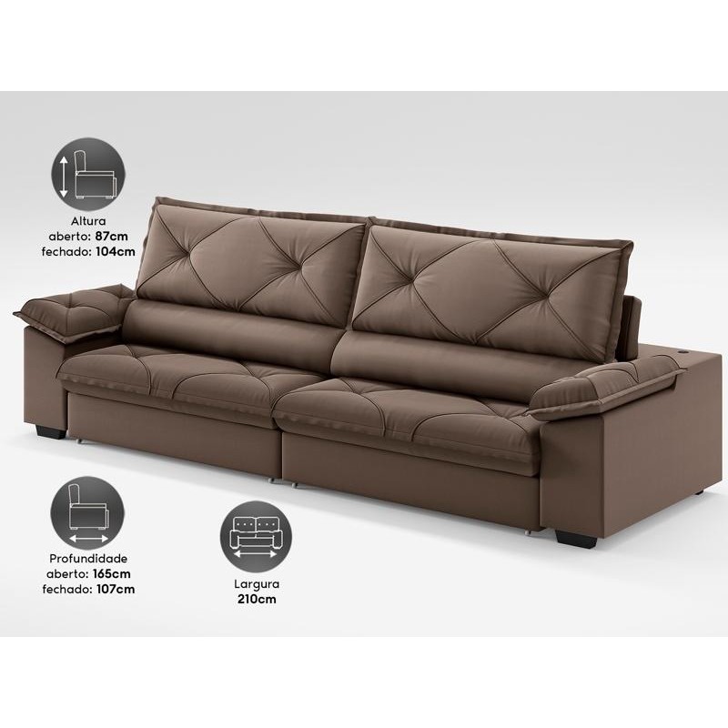 Sofá com Carregador USB e Molas no Assento Retrátil Reclinável Nice 2,10m Velosuede - NETSOFAS